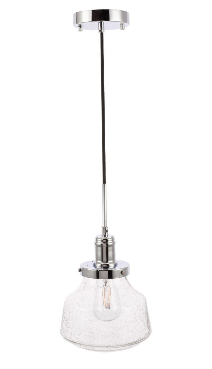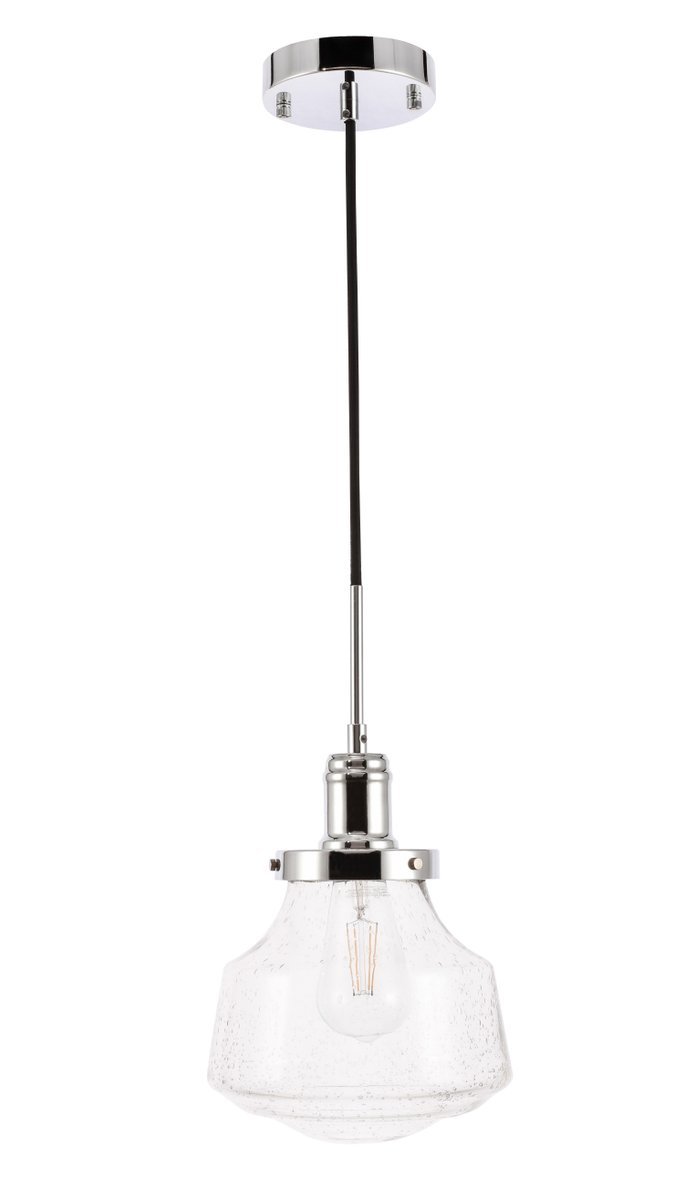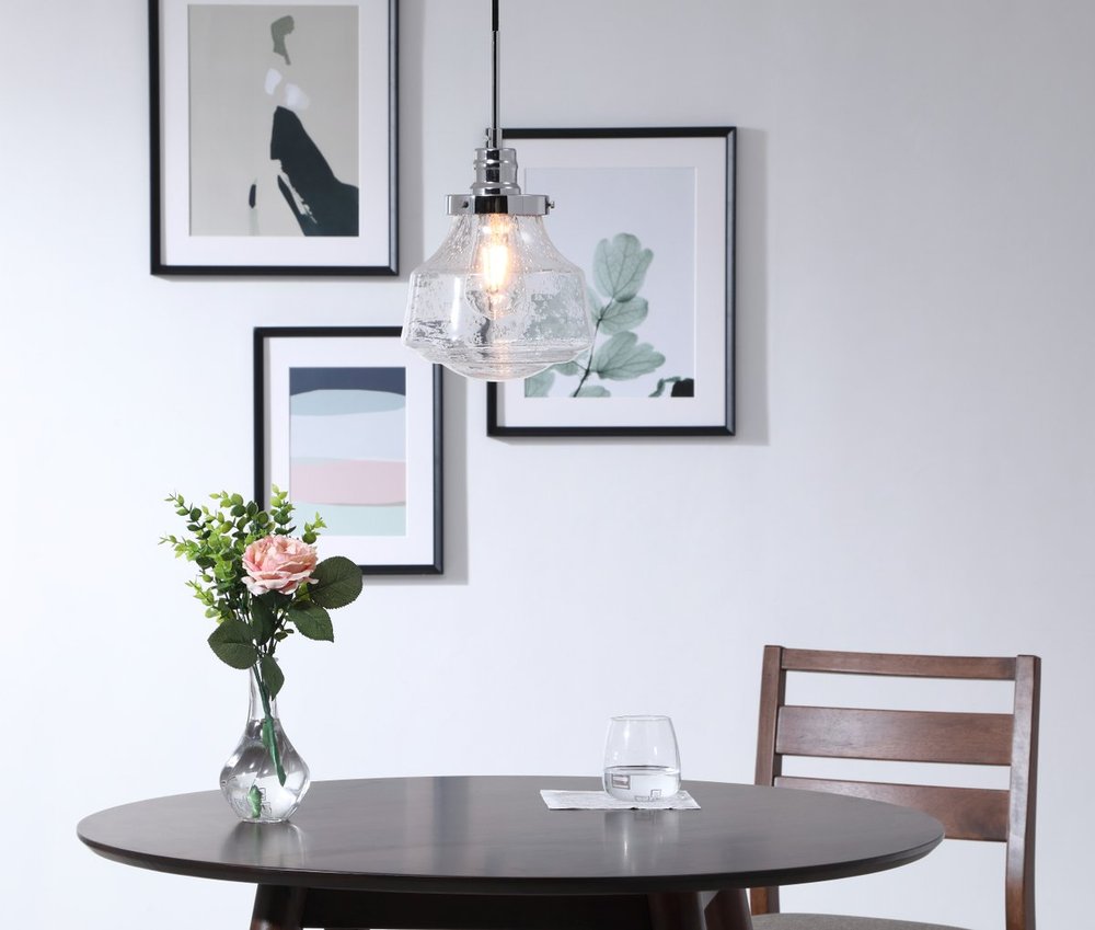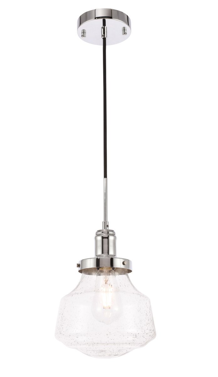 The Lyle Collection is a stunningly functional, yet simplistically lovely light. The geometric shade creates a clean form that will fit well in any space, large or small. Its versatile simplicity allows for this fixture to blend in well with the rest of your room, while still maintaining its own bright personality. Hanging from an adjustable black cord, it'll always be the perfect height for your dining room table or study space. Available in a black, chrome, or brass finish, and a clear bubble or frosted white shade, let this pendant lamp illuminate your room (light bulbs not included).