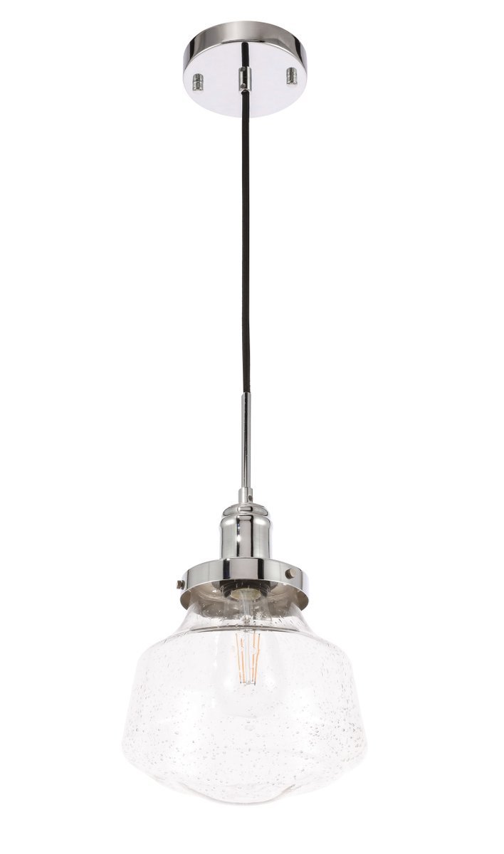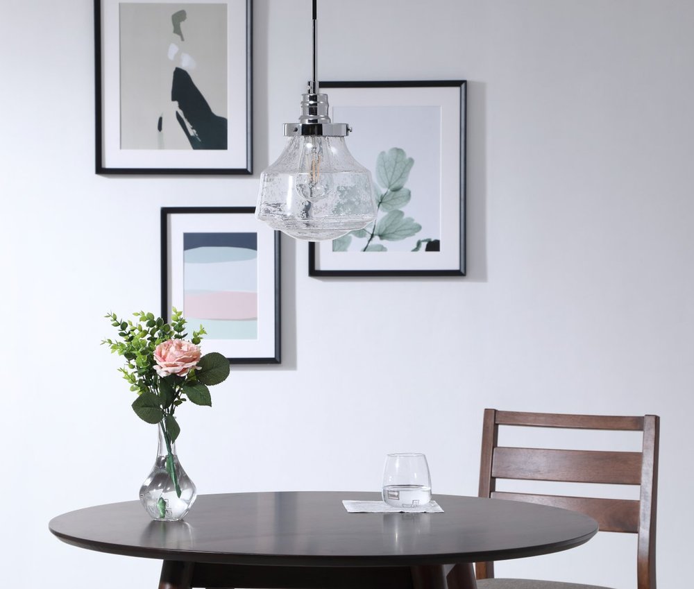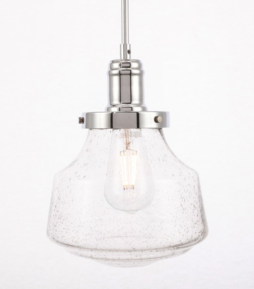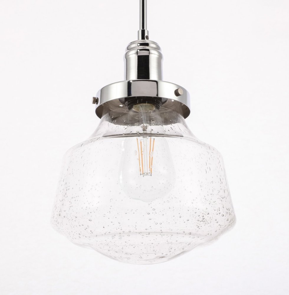 The Lyle Collection is a stunningly functional, yet simplistically lovely light. The geometric shade creates a clean form that will fit well in any space, large or small. Its versatile simplicity allows for this fixture to blend in well with the rest of your room, while still maintaining its own bright personality. Hanging from an adjustable black cord, it'll always be the perfect height for your dining room table or study space. Available in a black, chrome, or brass finish, and a clear bubble or frosted white shade, let this pendant lamp illuminate your room (light bulbs not included).