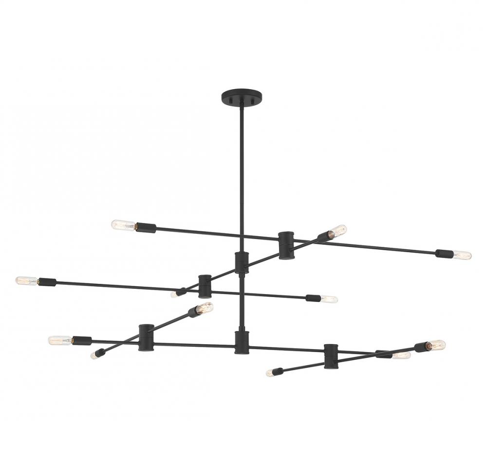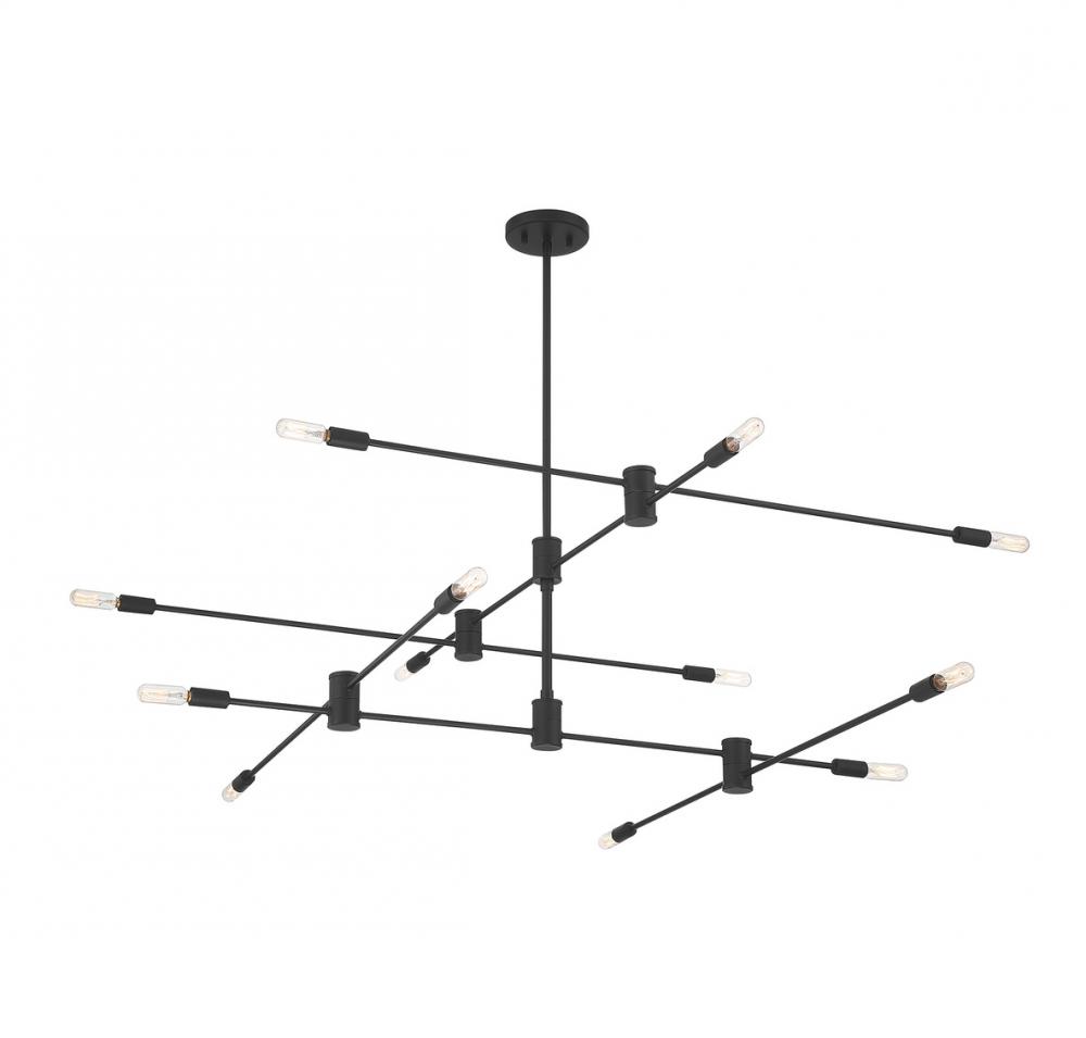 The open, structured look of the Savoy House Lyrique 12-light two-tier chandelier is a great choice for today's stylish interiors. The arms are adjustable, allowing you to create custom looks and change them on the fly. Finished in matte black. The hanging height is adjustable and this fixture can be mounted on a sloped ceiling. Chandeliers can be used in a wide variety of spaces, including but certainly not limited to dining rooms, living rooms, great rooms, bedrooms, kitchens, foyers, offices and even bathrooms! Bulbs not included. Try using stylized bulbs such as tubular shape for a different look! The finish can be matched with black hardware or mixed with hardware in other finishes. Lyrique is perfect for contemporary style spaces and any room that has an edgy touch. When you choose a Savoy House lighting fixture, you can be certain you’ve selected a piece that will withstand the test of time.