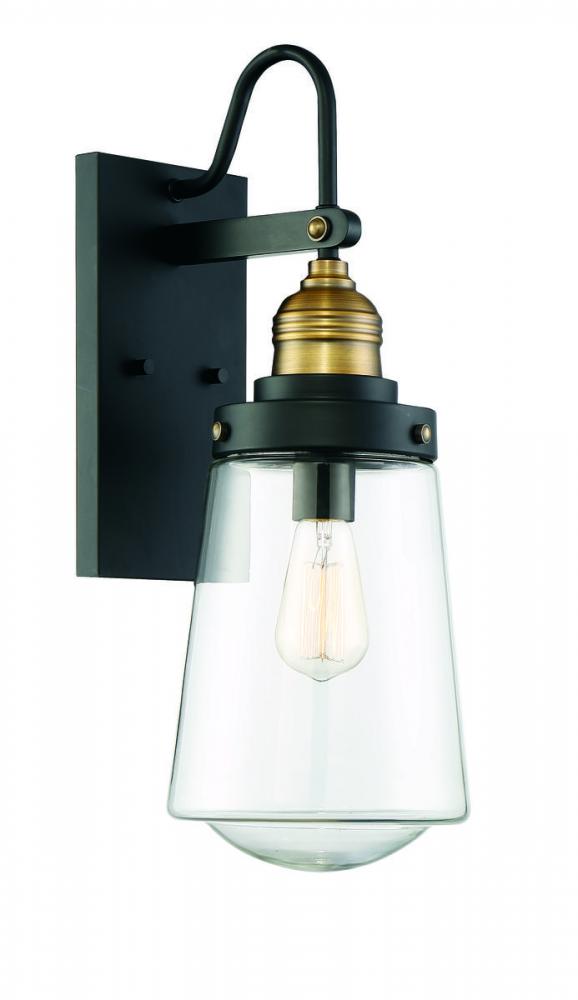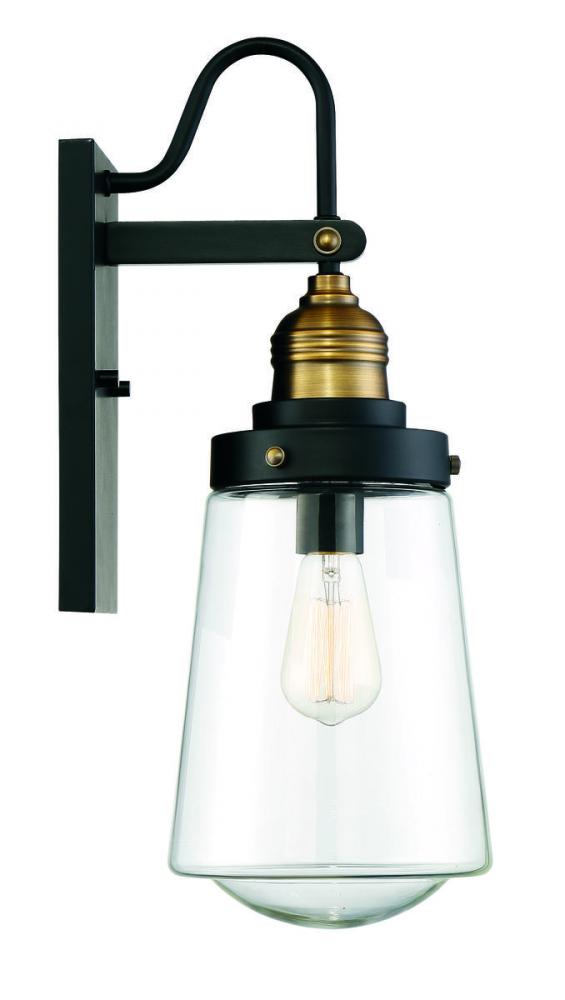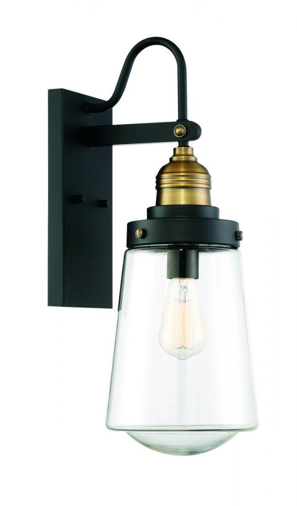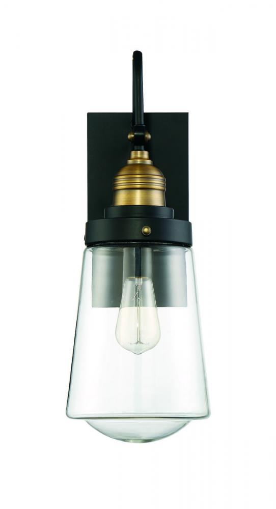 Exterior light fixtures tell people about your design sense before they’ve ever walked into your home. Make sure you’re sending the message you want, with stylish exterior porch lights like the Macauley 1-light wall lantern from Savoy House. Fashionably designed with mixed metals, this trend-conscious yet timeless outdoor lantern features a vintage black metal body with warm brass accents. The single bulb is enclosed in clear glass. Designed to complement homes with traditional, transitional, mid-century modern, industrial, rustic and urban farmhouse interiors, this exterior wall sconce is universally pleasing. And since it’s expertly manufactured with quality components, you’ll enjoy greeting visitors with it for many years to come.