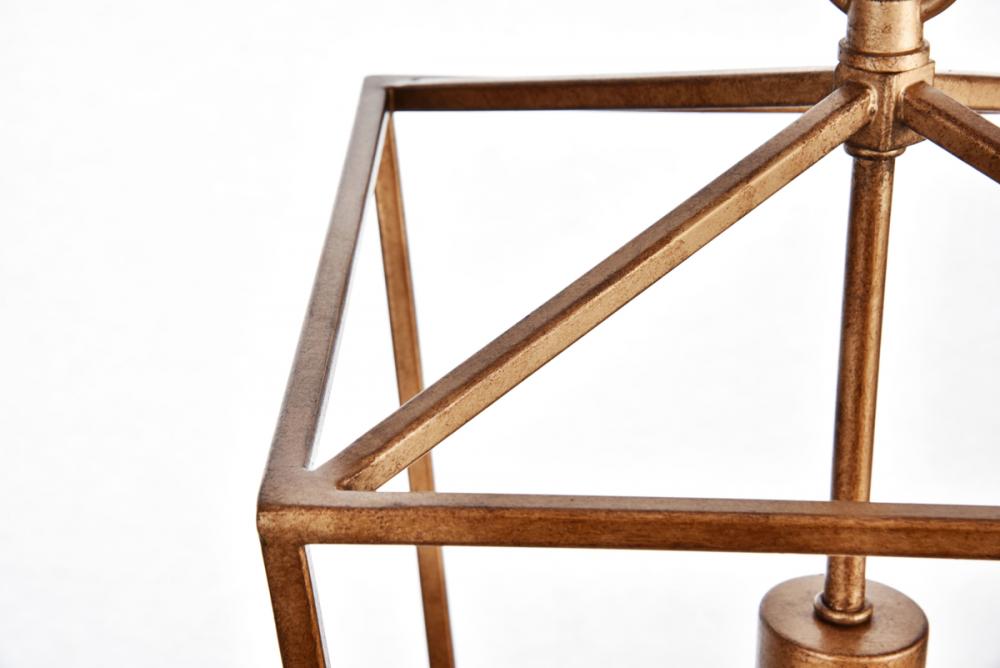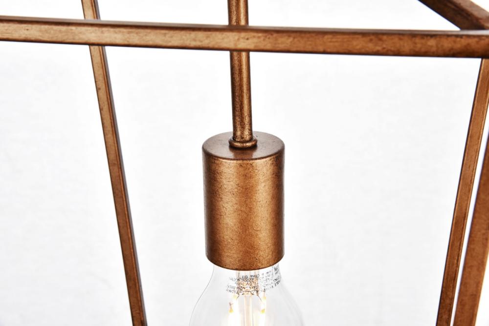 The Maddox collection brings the warmth and charm of the classic “coach light” into your dining room, foyer, or family room. This universally familiar shape features four tapered, inverted trapezoids topped by a clear pyramidal canopy. One medium-base E26 antique-style filament bulb (Not included) casts light in all directions. The sleek Metal frames and matching hanging chains are available in vintage Gold. These cozy pendant lamps complement any home’s décor.