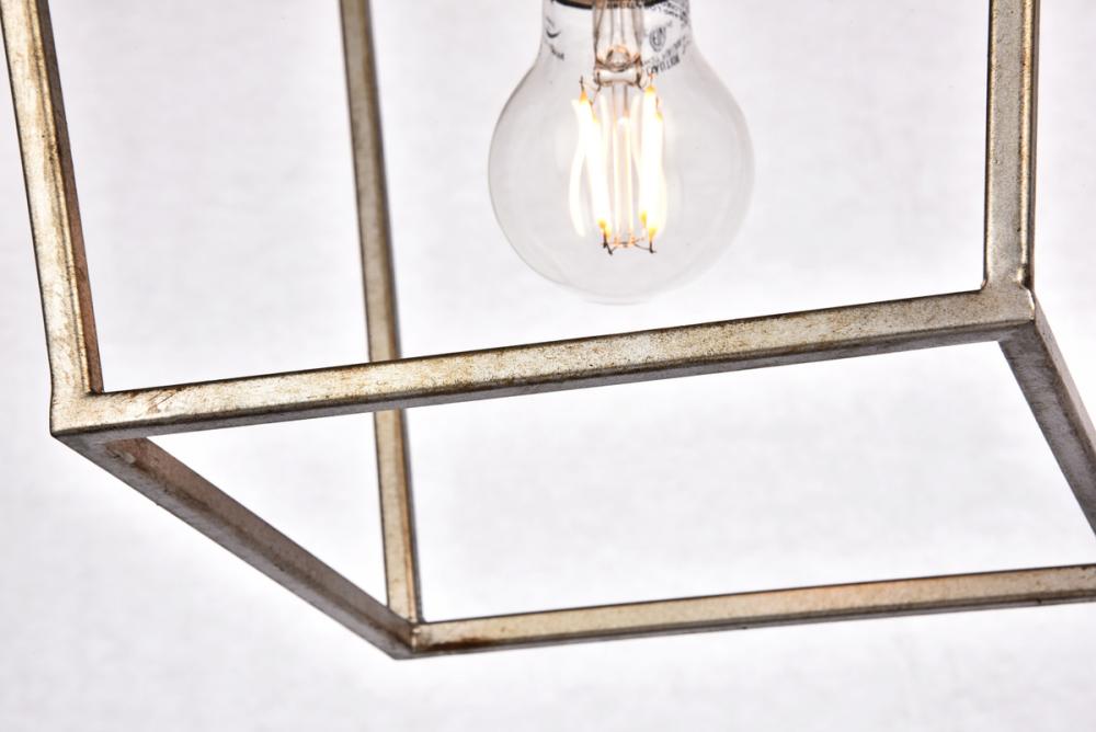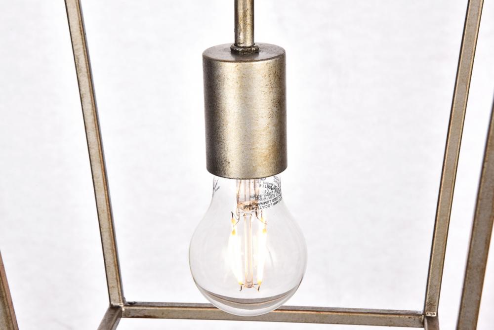 The Maddox collection brings the warmth and charm of the classic “coach light” into your dining room, foyer, or family room. This universally familiar shape features four tapered, inverted trapezoids topped by a clear pyramidal canopy. One medium-base E26 antique-style filament bulb (Not included) casts light in all directions. The sleek Metal frames and matching hanging chains are available in vintageSilver. These cozy pendant lamps complement any home’s décor.