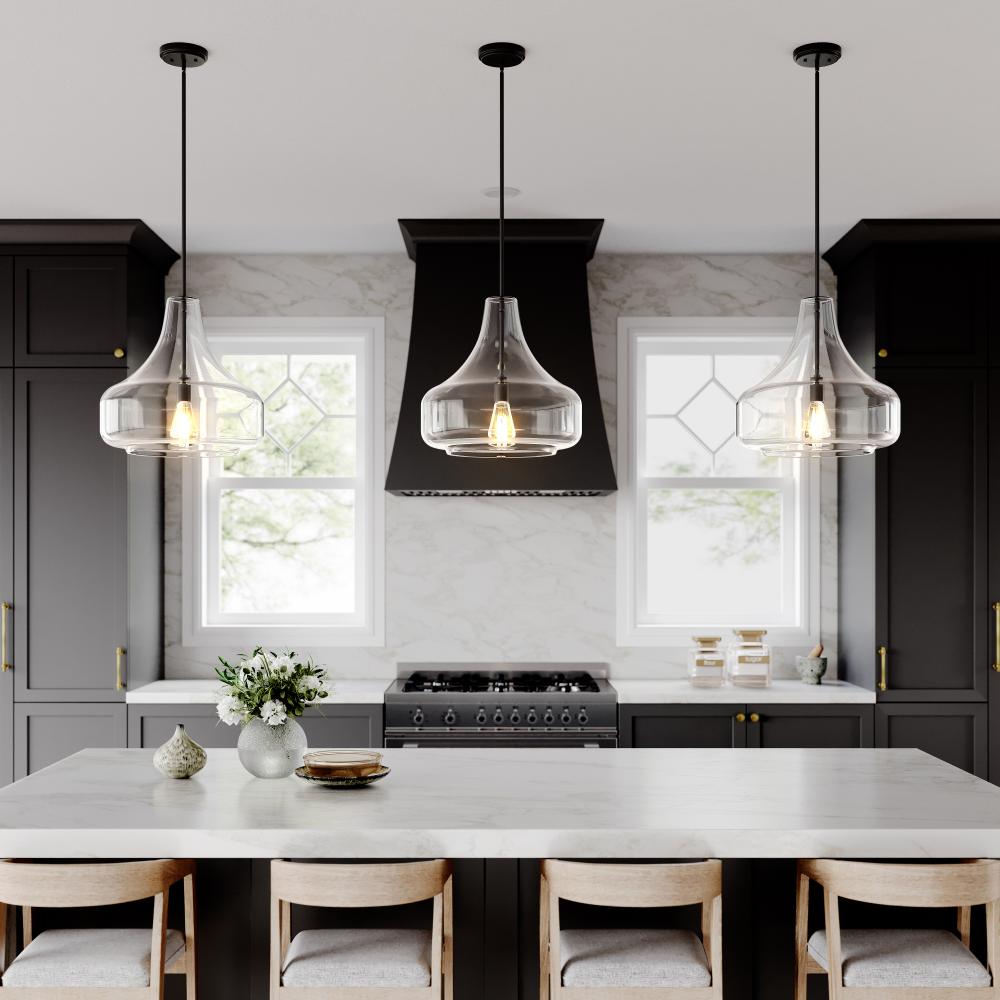 Simplicity and refinement are the hallmarks of the Madelynn Collection of pendant lighting. Clear bell-shaped glass globes suspend effortlessly from the single rod, creating the perfect framework for stylish, vintage-style Edison bulbs. Available in either matte black or vintage brass, these fixtures create an understated elegance for any interior, from modern farmhouse to industrial chic.