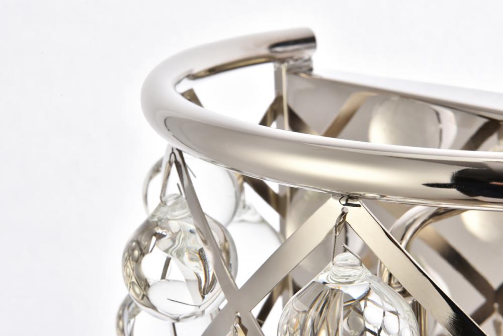 All the delicate beauty of a soap bubble paired with the steadfast strength of steel and iron. Madison collection wall sconces add the right touch of radiance that's ideal for a hallway, bedroom, or bathroom. Semicircular forged-iron grid and steel backplate available in golden-iron, mocha-brown, and polished-nickel finishes. Hand-polished, smooth crystal spheres available in clear give these wall sconces the perfect finishing touch.