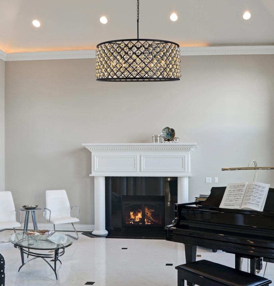 Lamp features a diameter of 43.5 inches, a height of 18.25 inches, a minimum hanging length of 24 inches, a maximum hanging length of 78 inches, and requires 10 candelabra bulbs