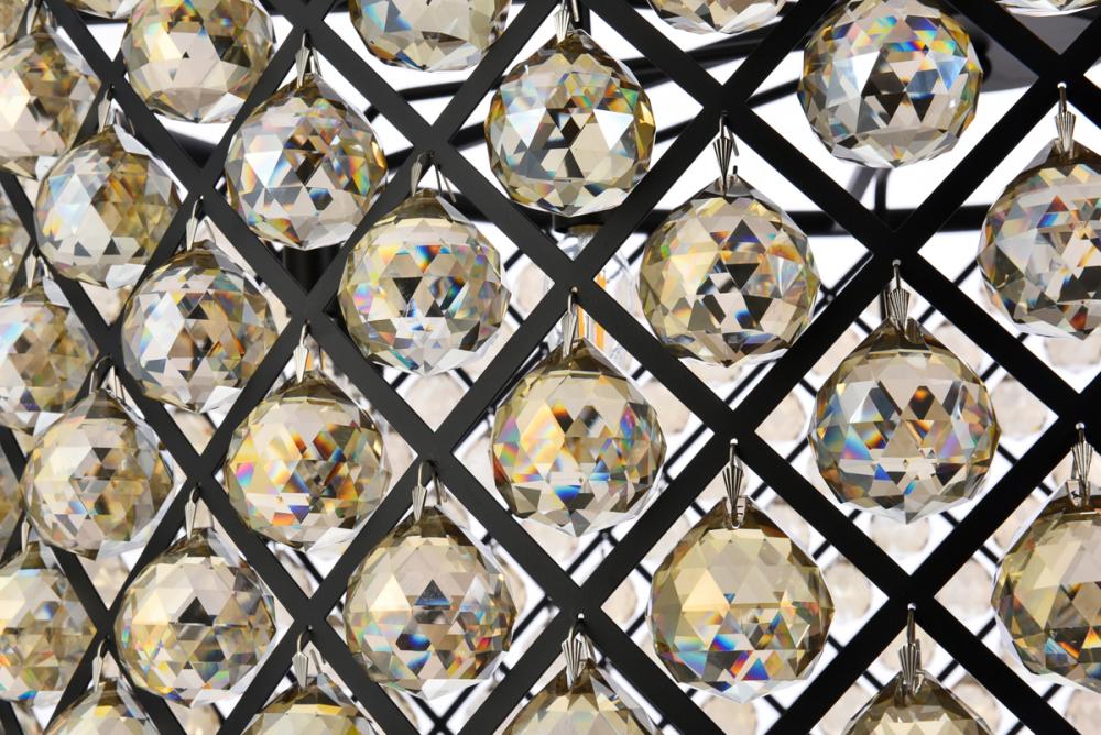 Modern simplicity meets organic beauty in the breathtakingly unique Madison collection. Hand-polished, multifaceted clear, golden-teak, or Silver-shade crystal spheres shimmer like dewdrops in a circular forged-iron grid with a golden-iron, Matte Black, or polished-nickel finish. These airy pendant lamps will brighten up a kitchen, dining room, foyer, or stairwell in an explosion of reflected light.