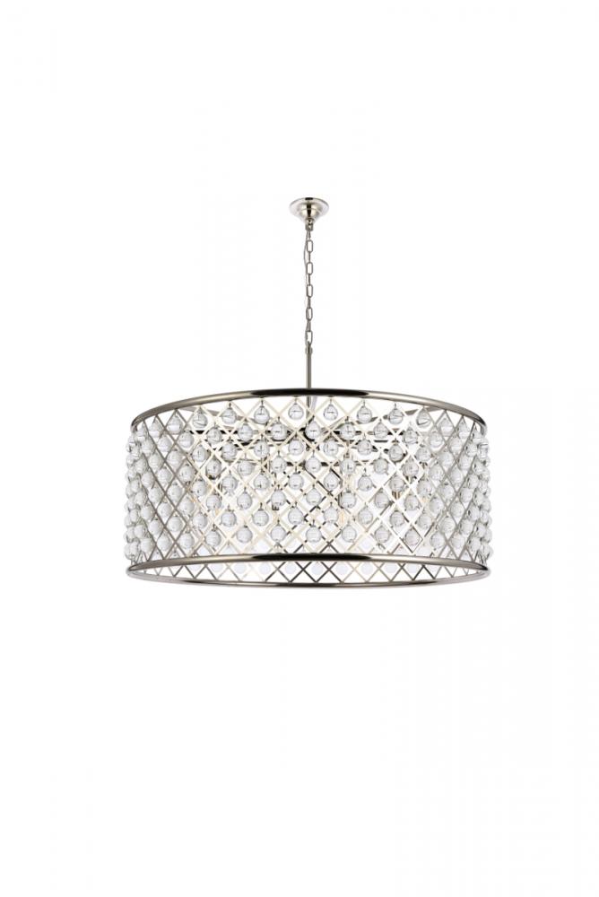 Lamp features a diameter of 43.5 inches, a height of 18.25 inches, a minimum hanging length of 24 inches, a maximum hanging length of 78 inches, and requires 10 candelabra bulbs