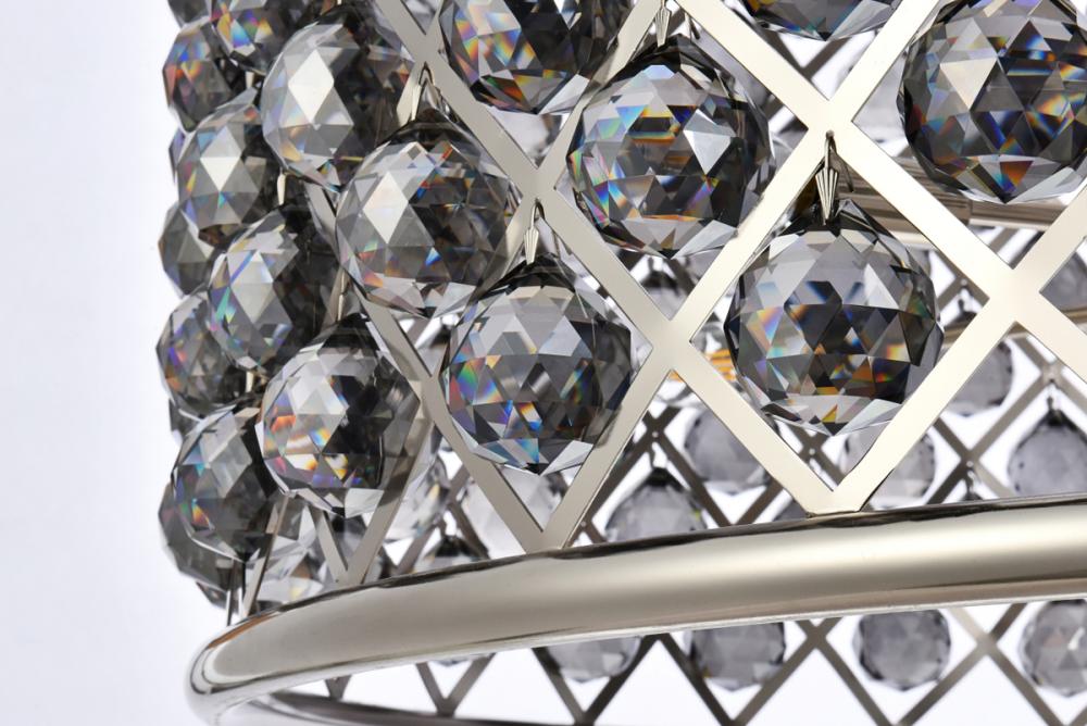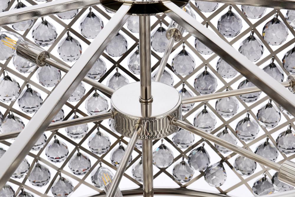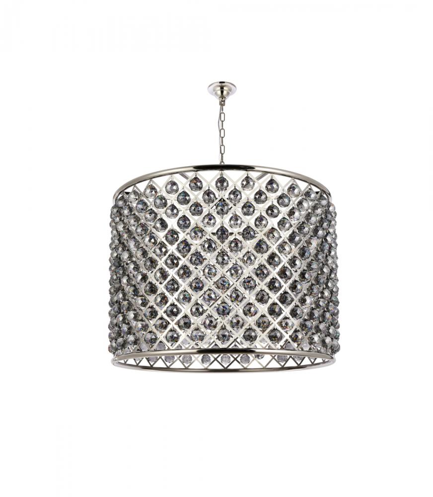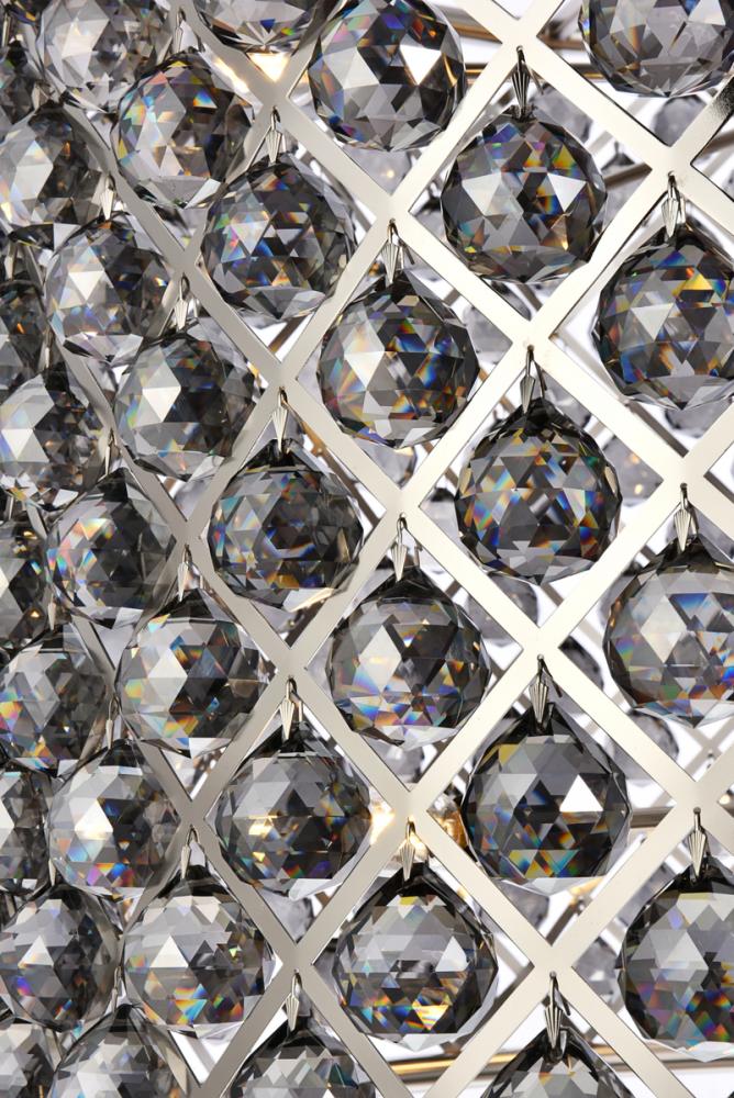 Modern simplicity meets organic beauty in the breathtakingly unique Madison collection. Hand-polished, multifaceted clear, golden-teak, or Silver-shade crystal spheres shimmer like dewdrops in a circular forged-iron grid with a golden-iron, mocha-brown, or polished-nickel finish. These airy pendant lamps will brighten up a kitchen, dining room, foyer, or stairwell in an explosion of reflected light.