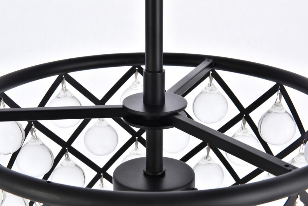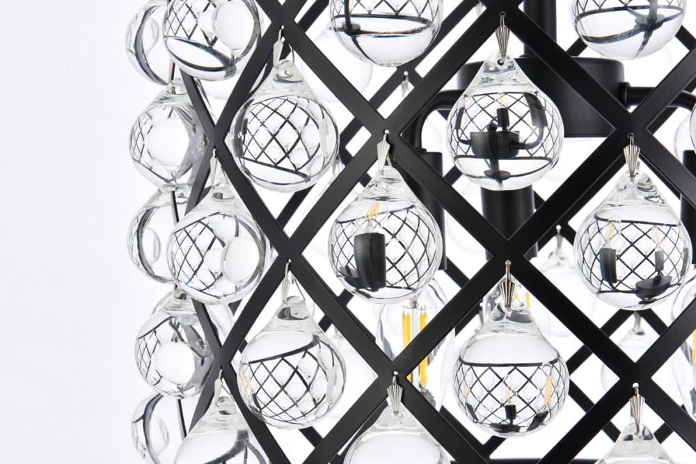 Modern simplicity meets organic beauty in the breathtakingly unique Madison collection. Hand-polished, multifaceted clear crystal spheres shimmer like dewdrops in a circular forged-iron grid with a golden-iron, Matte Black, or polished-nickel finish. These airy pendant lamps will brighten up a kitchen, dining room, foyer, or stairwell in an explosion of reflected light.