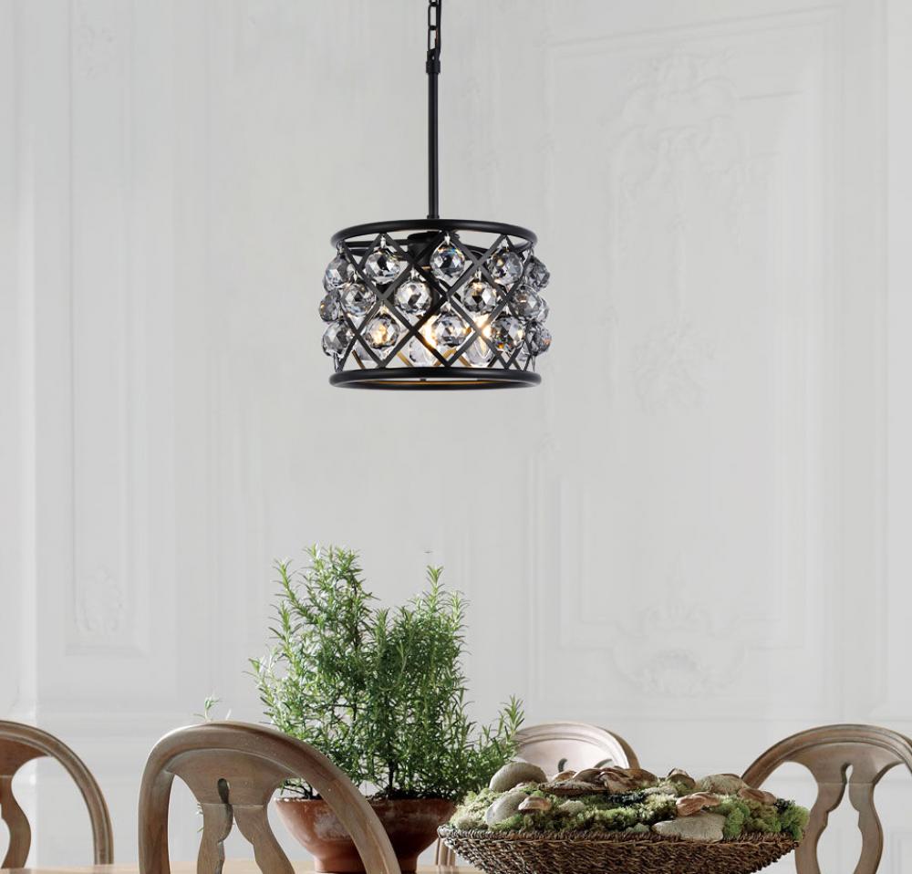 Modern simplicity meets organic beauty in the breathtakingly unique Madison collection. Hand-polished, multifaceted clear, golden-teak, or Silver-shade crystal spheres shimmer like dewdrops in a circular forged-iron grid with a golden-iron, Matte Black, or polished-nickel finish. These airy pendant lamps will brighten up a kitchen, dining room, foyer, or stairwell in an explosion of reflected light.