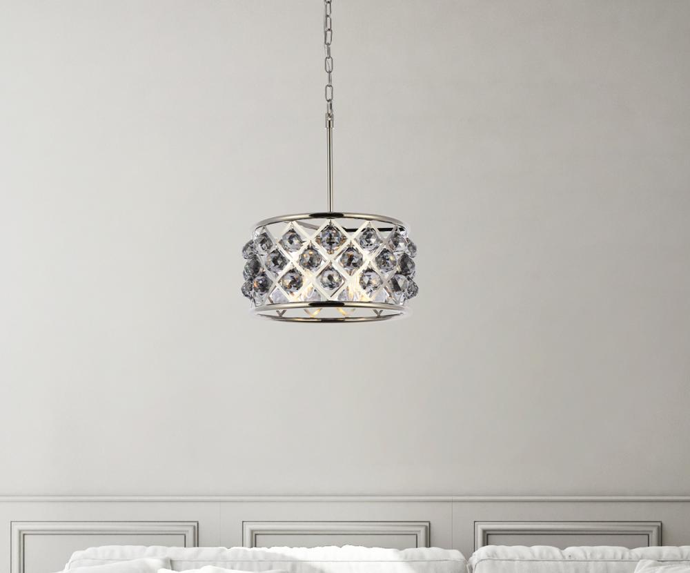 Modern simplicity meets organic beauty in the breathtakingly unique Madison collection. Hand-polished, multifaceted clear, golden-teak, or Silver-shade crystal spheres shimmer like dewdrops in a circular forged-iron grid with a golden-iron, mocha-brown, or polished-nickel finish. These airy pendant lamps will brighten up a kitchen, dining room, foyer, or stairwell in an explosion of reflected light.