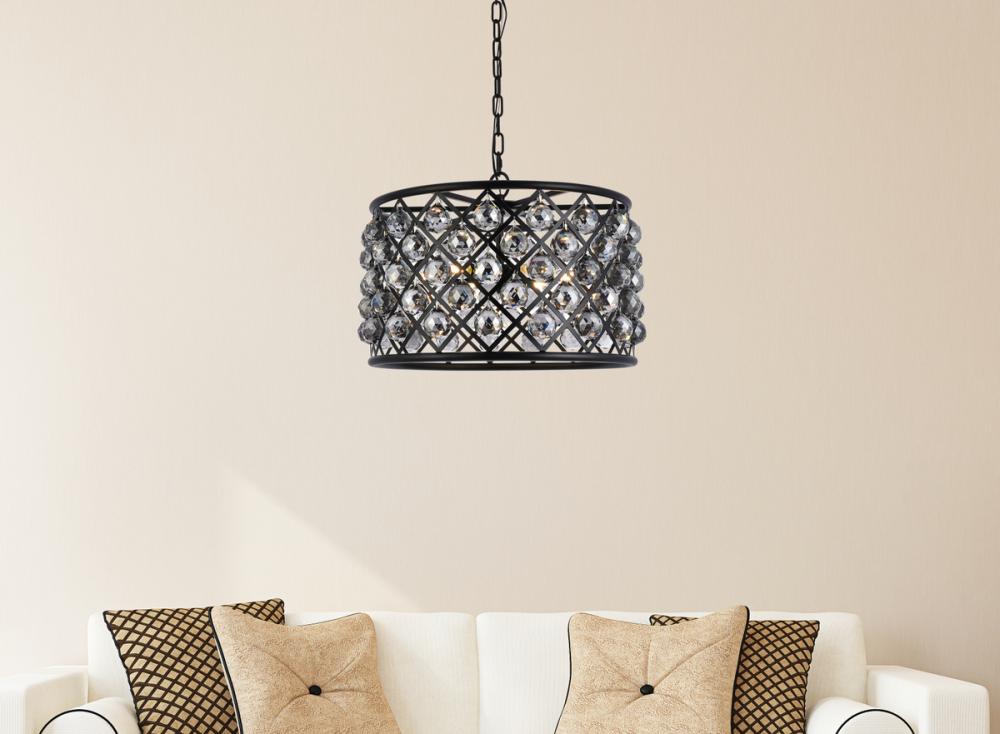 Modern simplicity meets organic beauty in the breathtakingly unique Madison collection. Hand-polished, multifaceted clear, golden-teak, or Silver-shade crystal spheres shimmer like dewdrops in a circular forged-iron grid with a golden-iron, Matte Black, or polished-nickel finish. These airy pendant lamps will brighten up a kitchen, dining room, foyer, or stairwell in an explosion of reflected light.