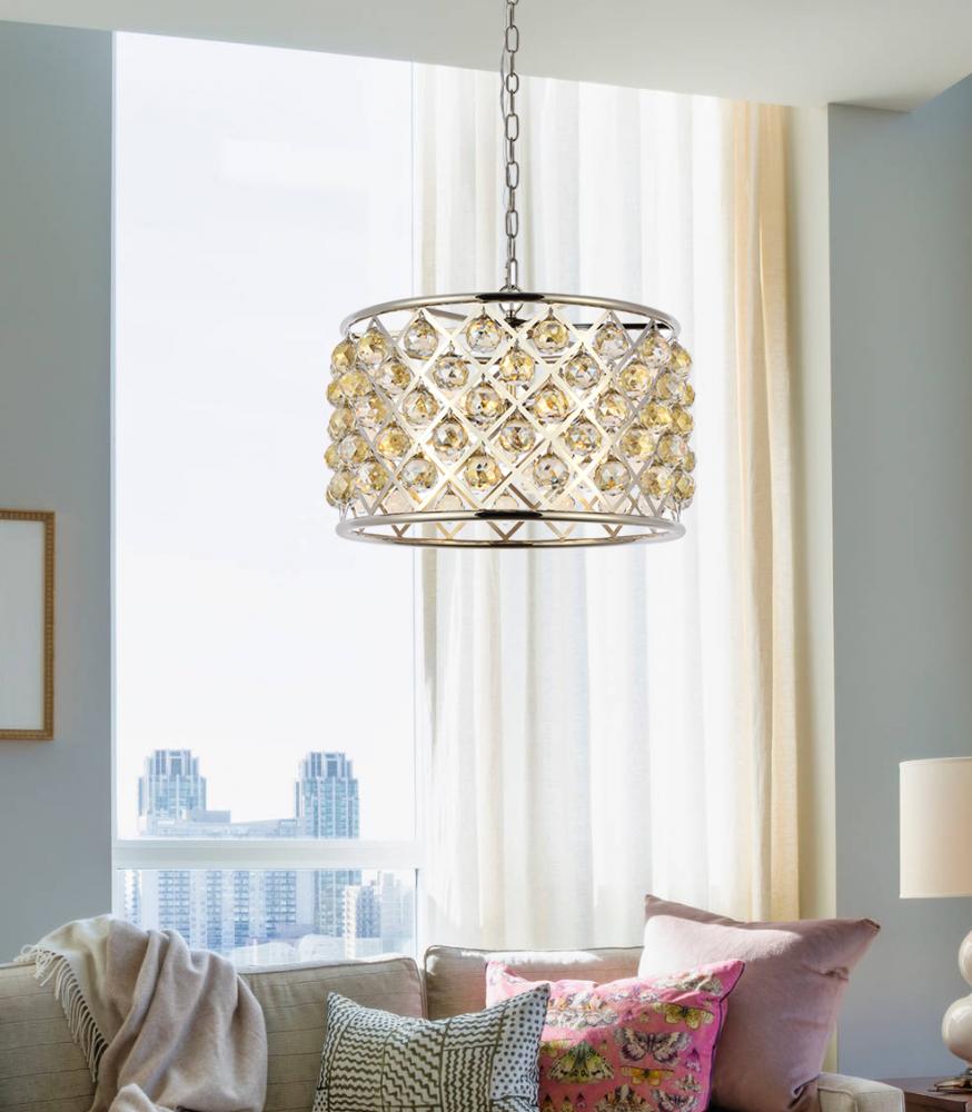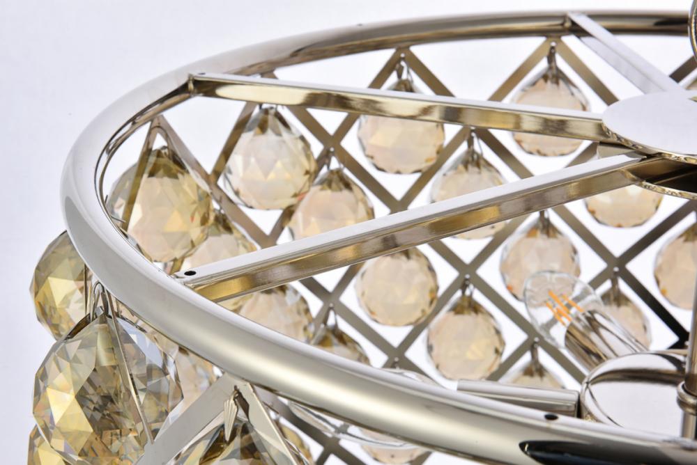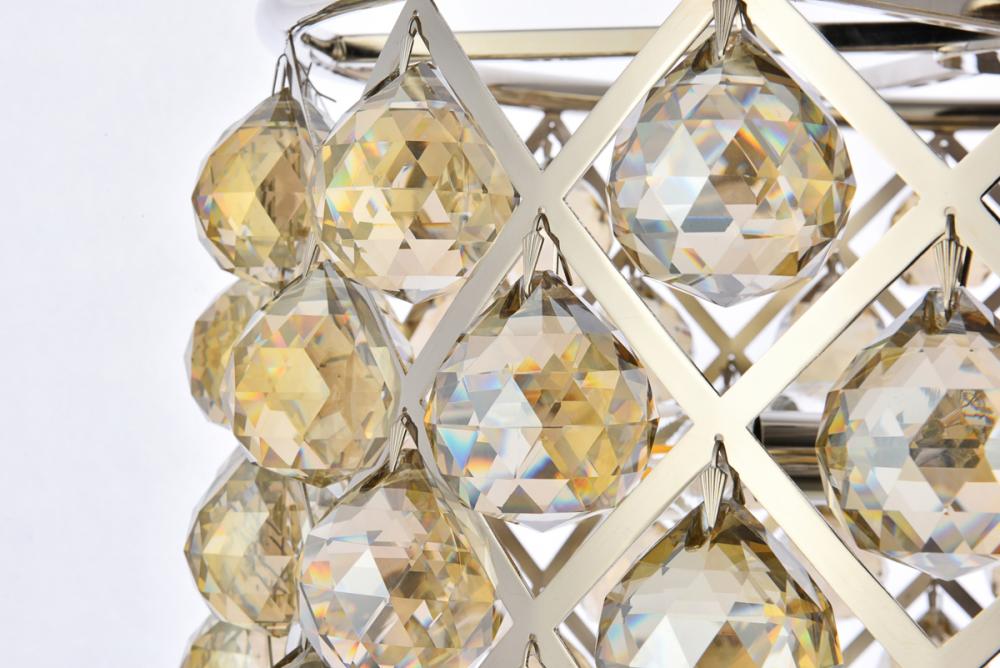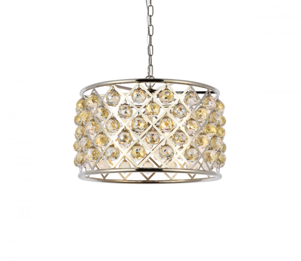Modern simplicity meets organic beauty in the breathtakingly unique Madison collection. Hand-polished, multifaceted clear, golden-teak, or Silver-shade crystal spheres shimmer like dewdrops in a circular forged-iron grid with a golden-iron, mocha-brown, or polished-nickel finish. These airy pendant lamps will brighten up a kitchen, dining room, foyer, or stairwell in an explosion of reflected light.