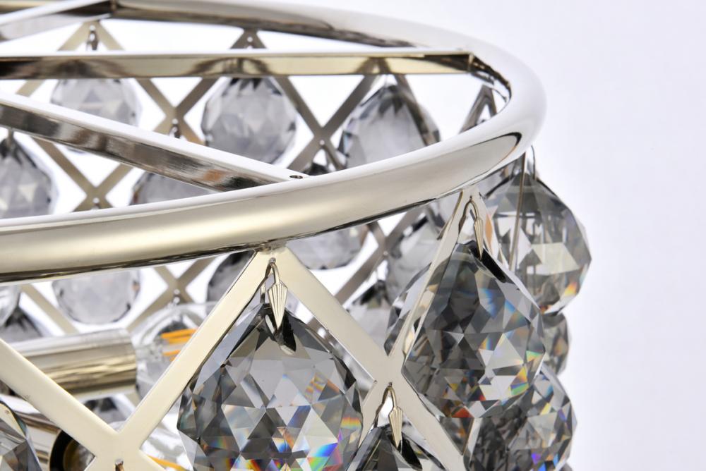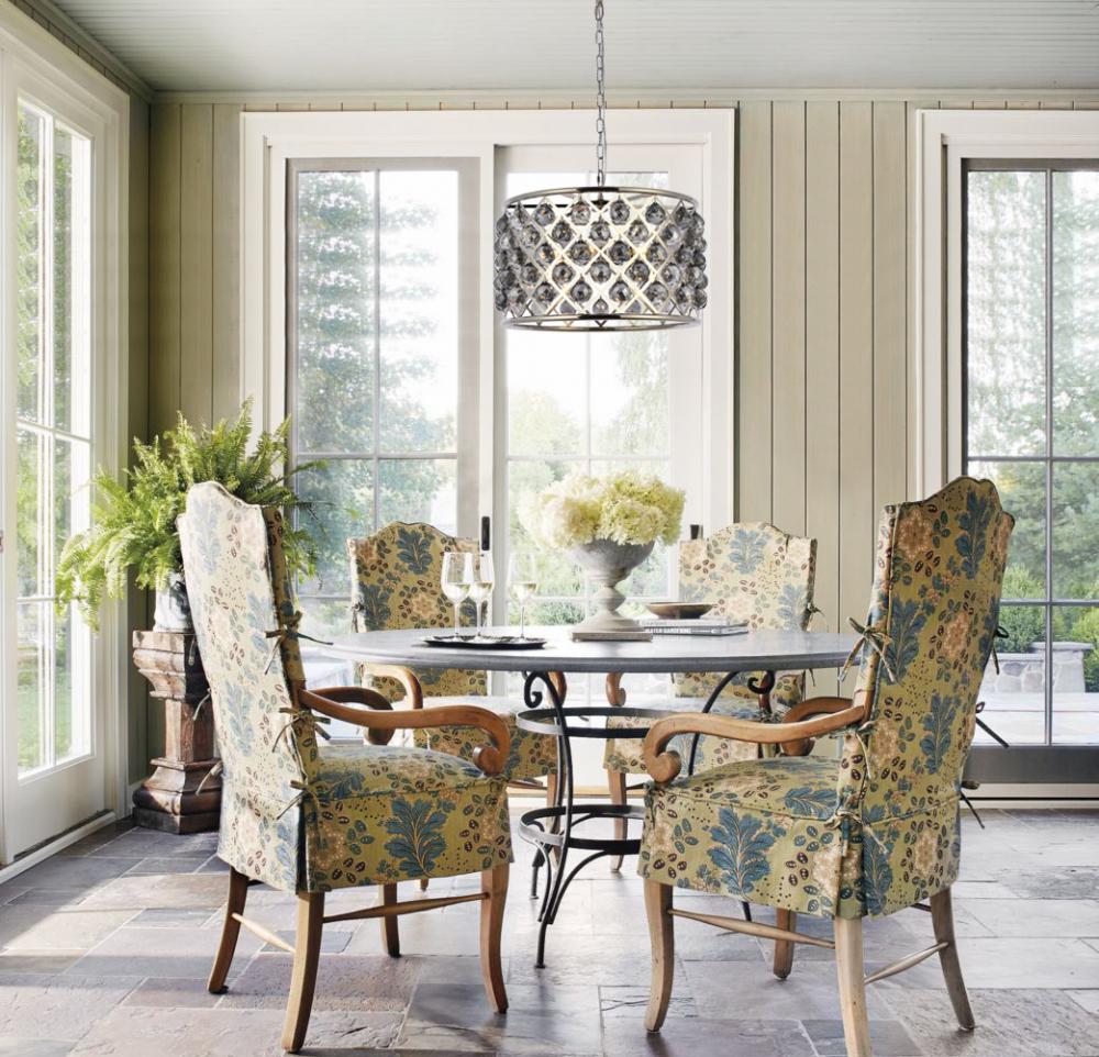 Modern simplicity meets organic beauty in the breathtakingly unique Madison collection. Hand-polished, multifaceted clear, golden-teak, or Silver-shade crystal spheres shimmer like dewdrops in a circular forged-iron grid with a golden-iron, mocha-brown, or polished-nickel finish. These airy pendant lamps will brighten up a kitchen, dining room, foyer, or stairwell in an explosion of reflected light.