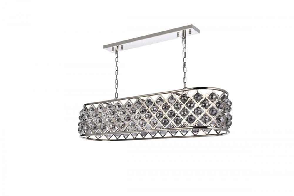 Modern simplicity meets organic beauty in the breathtakingly unique Madison collection. Hand-polished, multifaceted clear, golden-teak, or Silver-shade crystal spheres shimmer like dewdrops in an oblong forged-iron grid with a golden-iron, mocha-brown, or polished-nickel finish. These airy chandeliers will brighten up a kitchen, dining room, foyer, or stairwell in an explosion of reflected light.