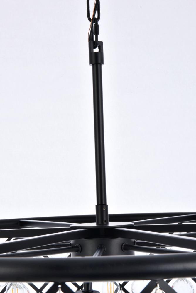 Lamp features a diameter of 32 inches, a height of 10.5 inches, a minimum hanging length of 16 inches, a maximum hanging length of 70 inches, and requires 8 candelabra bulbs