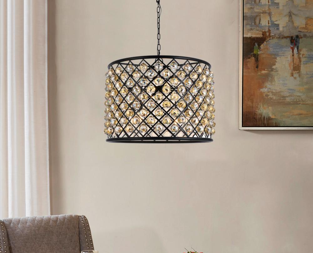 Modern simplicity meets organic beauty in the breathtakingly unique Madison collection. Hand-polished, multifaceted clear, golden-teak, or Silver-shade crystal spheres shimmer like dewdrops in a circular forged-iron grid with a golden-iron, Matte Black, or polished-nickel finish. These airy pendant lamps will brighten up a kitchen, dining room, foyer, or stairwell in an explosion of reflected light.