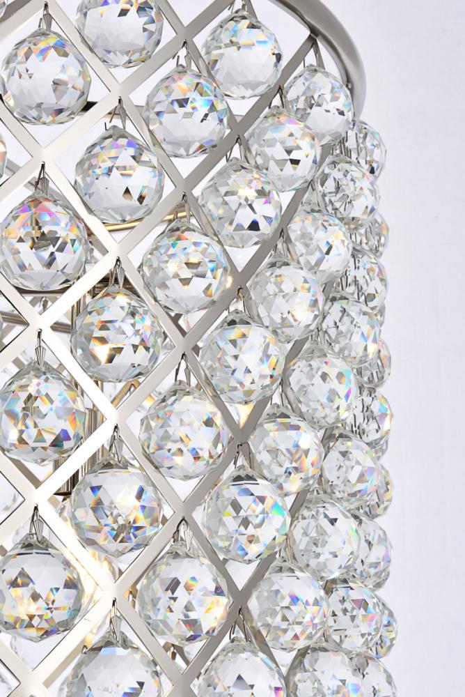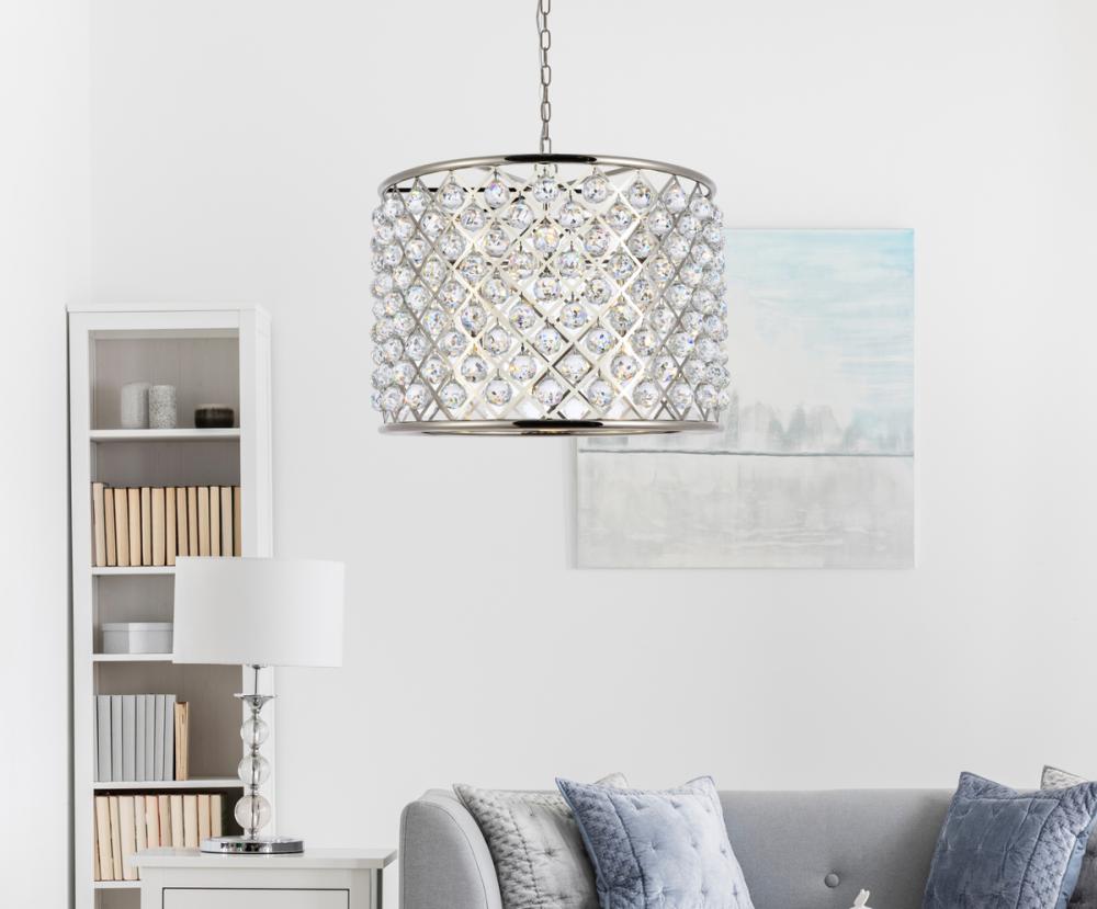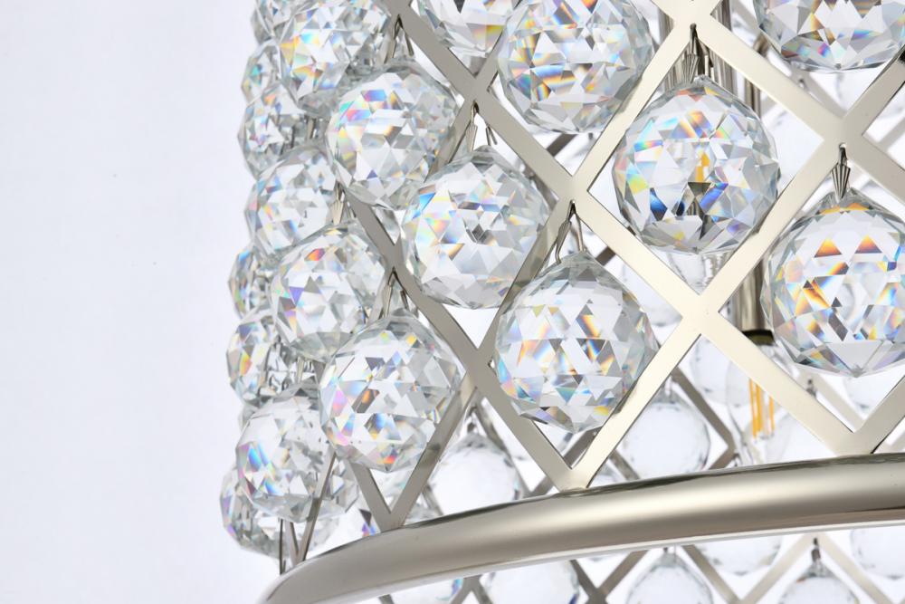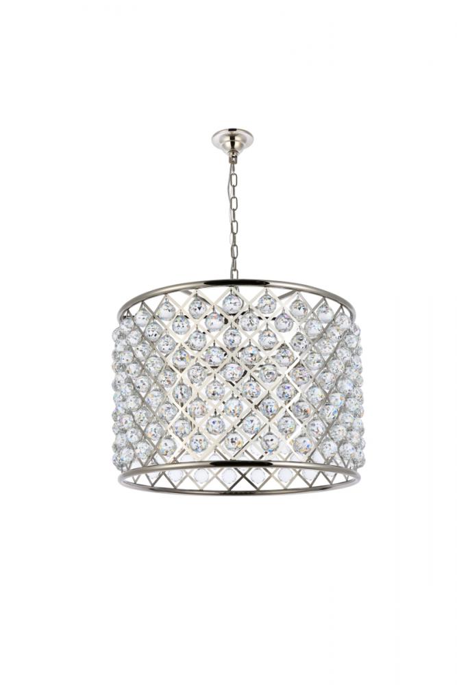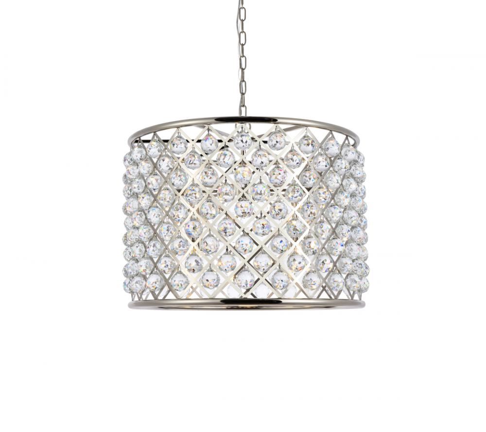 Modern simplicity meets organic beauty in the breathtakingly unique Madison collection. Hand-polished, multifaceted clear, golden-teak, or Silver-shade crystal spheres shimmer like dewdrops in a circular forged-iron grid with a golden-iron, mocha-brown, or polished-nickel finish. These airy pendant lamps will brighten up a kitchen, dining room, foyer, or stairwell in an explosion of reflected light.
