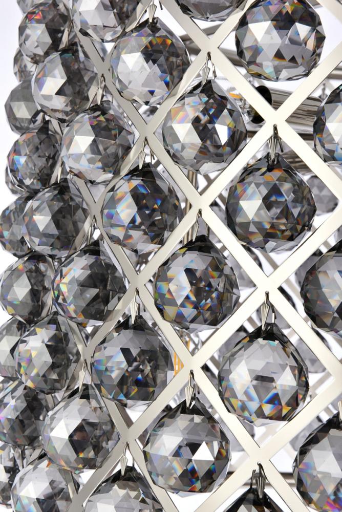 Modern simplicity meets organic beauty in the breathtakingly unique Madison collection. Hand-polished, multifaceted clear, golden-teak, or Silver-shade crystal spheres shimmer like dewdrops in a circular forged-iron grid with a golden-iron, mocha-brown, or polished-nickel finish. These airy pendant lamps will brighten up a kitchen, dining room, foyer, or stairwell in an explosion of reflected light.