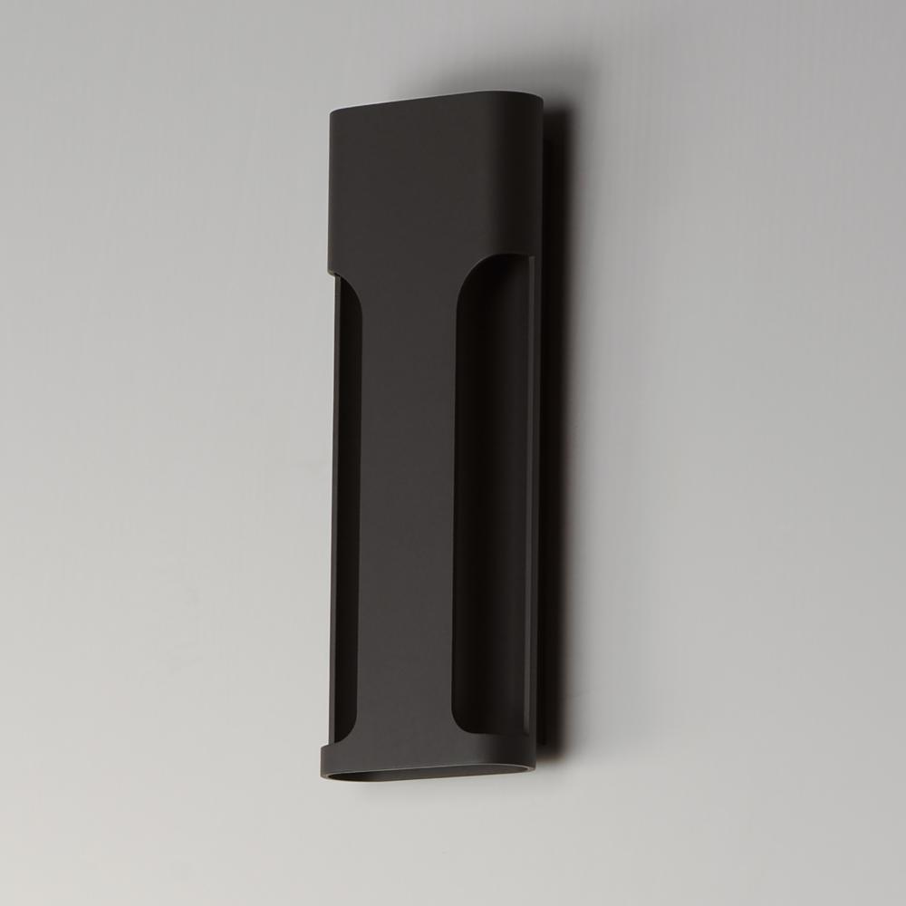 Large aluminum extrusions with indirect lighting highlights cut outs in this architectural outlook. Directed outwards toward the cutouts, these sconces are rated for outdoor applications. Select from Black or Architectural Bronze finishes and two sizes of