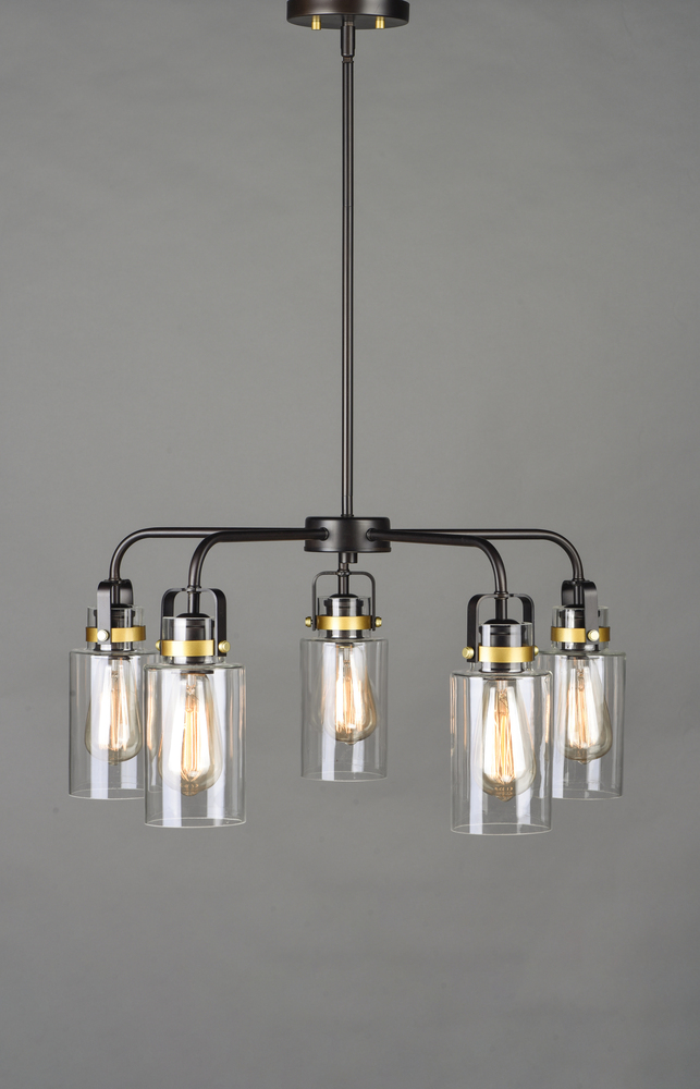 Modern farmhouse design requires vintage looks with an updated style. This collection fits this definition with minimalistic styled frames of Bronze with Gold accents that cradle Clear mason jar shaped glass. Add vintage bulbs for farmhouse appeal or tubul
