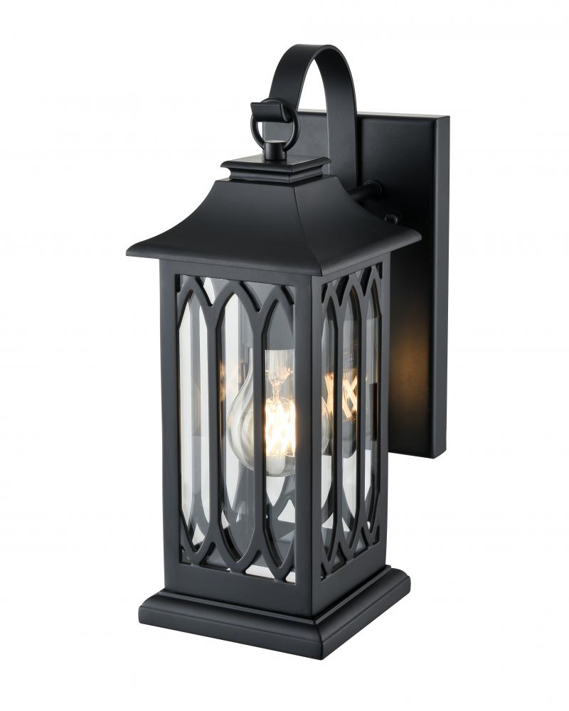 Exquisite metalwork creates wonderful light play for the Mallorey Family of outdoor lighting. The aluminum housing, finished in powder coated black, is punctuated with a modern spin on Gothic-style arches and the traditional hook-and-arm profile. The fixtures are available as 1-, 2-, and 3-light sconce, 3-light pendant, or 3-light post, and create a dramatic effect across any exterior.