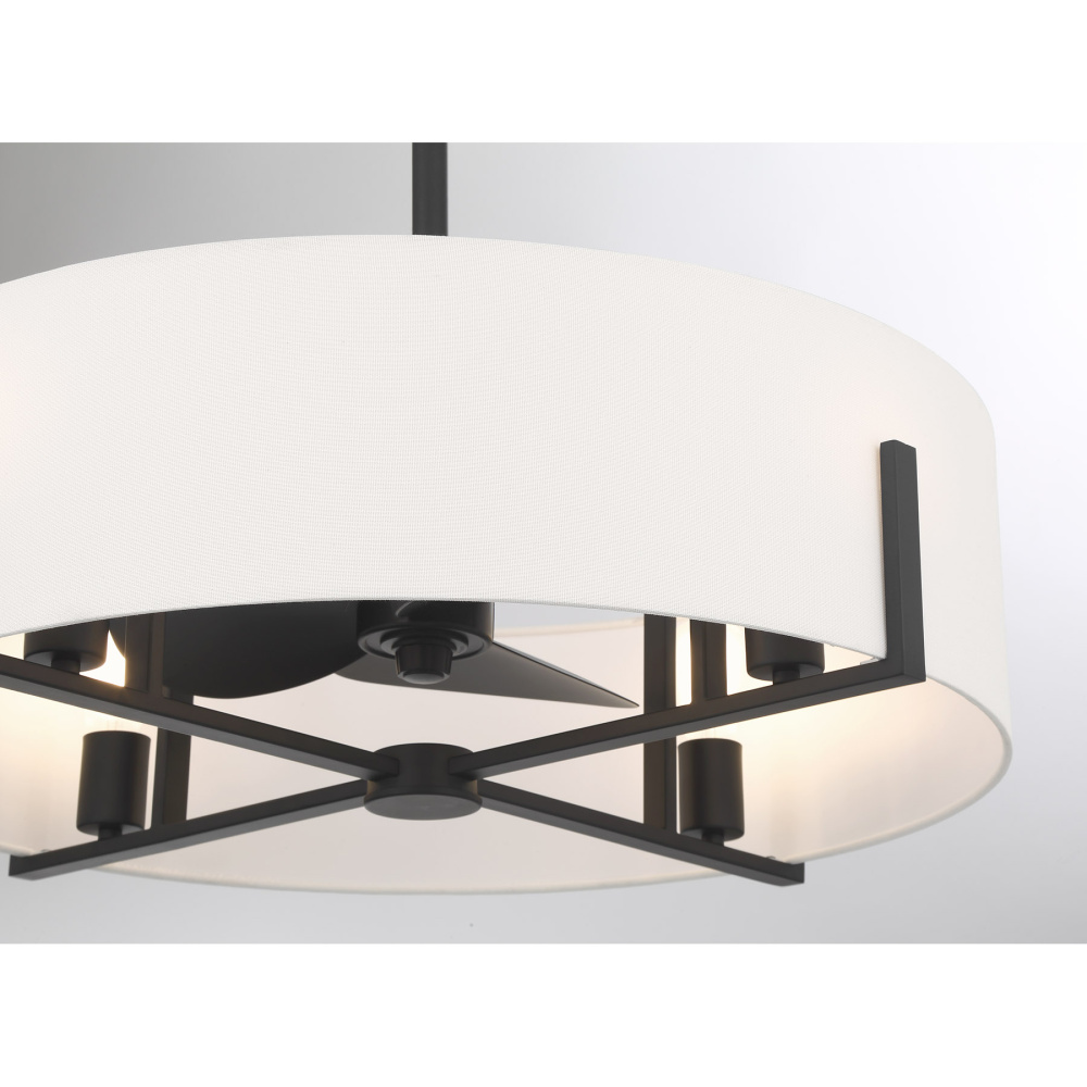Bring crisply elegant transitional style to your home with the unique Savoy House Mansell 4-Light Fan D'Lier! It flaunts a white fabric shade held in place on jewelry-like prongs that are finished in Matte Black. Get bright and welcoming illumination from the included LED E26-base bulbs, too. Mansell is 10" in height and 26" in width. It comes with a 4" downrod and an 18" downrod. For extra convenience, a handheld remote control is included. A Savoy House exclusive, Fan D’Liers combine the best of ceiling fans with the best of chandeliers in one fabulously fashionable fixture. Inspired by high-end designer styles, these custom designs take top trends to a whole new level.