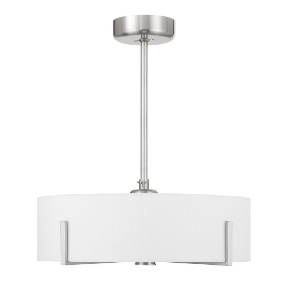 Bring crisply elegant transitional style to your home with the unique Savoy House Mansell 4-Light Fan D'Lier! It flaunts a white fabric shade held in place on jewelry-like prongs that are finished in Satin Nickel. Get bright and welcoming illumination from the included LED E26-base bulbs, too. Mansell is 10" in height and 26" in width. It comes with a 4" downrod and an 18" downrod. For extra convenience, a handheld remote control is included. A Savoy House exclusive, Fan D’Liers combine the best of ceiling fans with the best of chandeliers in one fabulously fashionable fixture. Inspired by high-end designer styles, these custom designs take top trends to a whole new level.