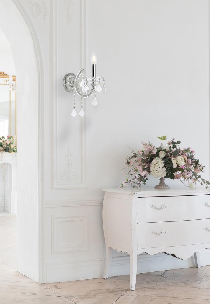 Give your foyer, hallway, or bathroom the royal treatment with the Maria Theresa collection wall sconces. Dazzling drop crystals in clear or golden teak shimmer amid glowing exposed bulbs. Gracefully arching glass-coated arms come in a range of finishes. A majestic display in a kaleidoscope of color combinations.