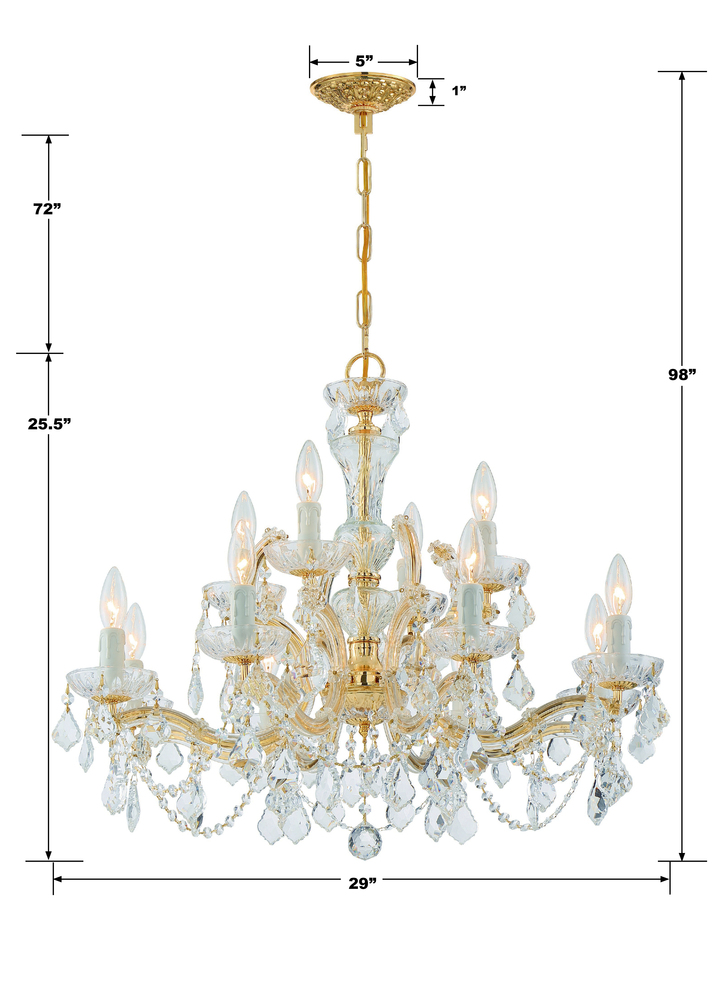 Draped in an abundance of crystal, the Maria Theresa collection is the epitome of high style. The fixture is stunning with glass arm frame decked with strands of faceted cut crystal. The fixture showcases opulence and decadence and is the perfect traditional accent to any space. Whether in a living room, or even closet or hallway, this fixture bring a luxurious addition to any decor.