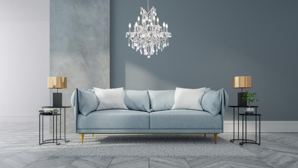 A heavenly high point to your home, Maria Theresa collection pendant lamps are ablaze with hundreds of resplendent crystals. Copious strands of sparkling clear or golden-teak crystals dangle from elaborate tiers of glass-coated steel arms in your choice of a chrome, gold, golden-teak, white, or black finish. An imperial favorite for the stairwell, dining room, or living room.