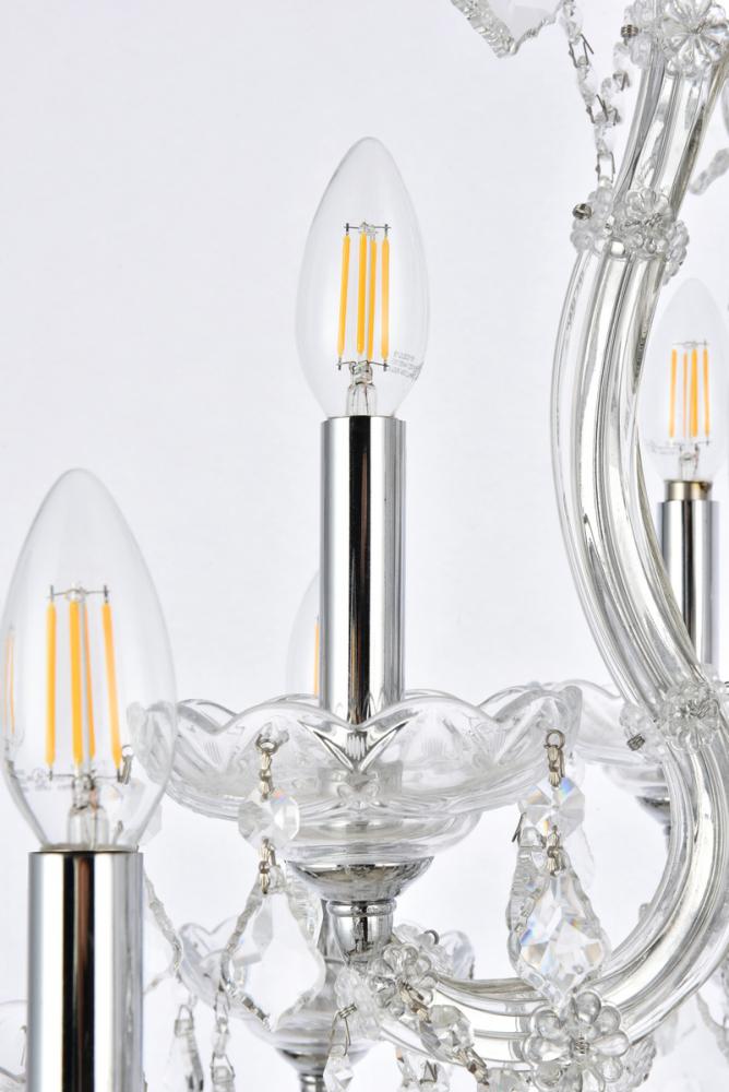 Lamp features a diameter of 27 inches, a height of 26 inches, and requires 13 candelabra bulbs