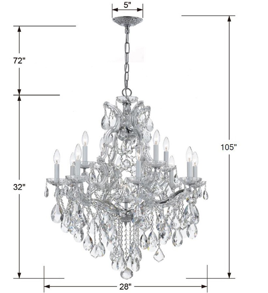 Draped in an abundance of crystal, the Maria Theresa collection is the epitome of high style. The fixture is stunning with glass arm frame decked with strands of faceted cut crystal. The fixture showcase opulence and decadence and is the perfect traditional accent to any space. Whether in a living room, or even closet or hallway, this fixture bring a luxurious addition to any decor.