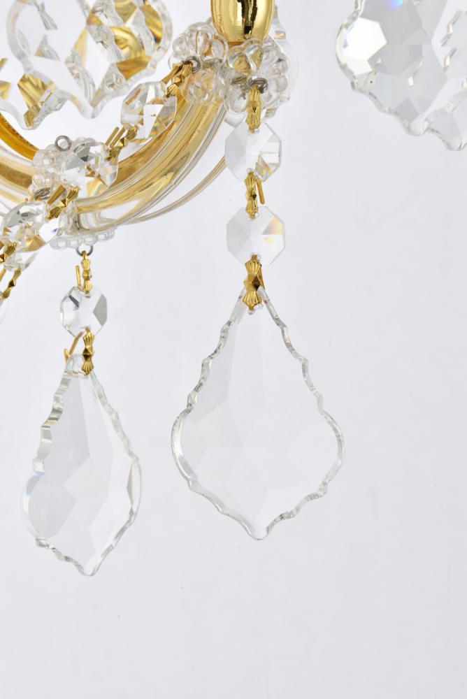 Give your foyer, hallway, or bathroom the royal treatment with the Maria Theresa collection wall sconces. Dazzling drop crystals in clear or golden teak shimmer amid glowing exposed bulbs. Gracefully arching glass-coated arms come in a range of finishes. A majestic display in a kaleidoscope of color combinations.