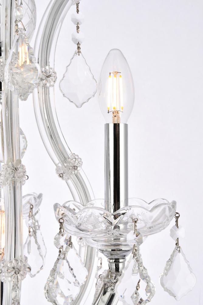 A heavenly high point to your home, Maria Theresa collection pendant lamps are ablaze with hundreds of resplendent crystals. Copious strands of sparkling clear or golden-teak crystals dangle from elaborate tiers of glass-coated steel arms in your choice of a chrome, gold, golden-teak, white, or black finish. An imperial favorite for the stairwell, dining room, or living room.