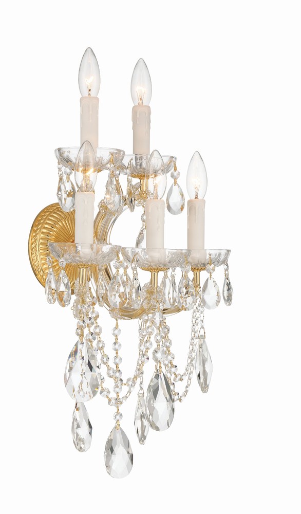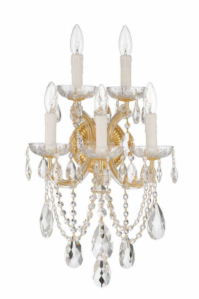Draped in an abundance of crystal, the Maria Theresa collection is the epitome of high style. The fixture is stunning with glass arm frame decked with strands of faceted cut crystal. The fixture showcases opulence and decadence and is the perfect traditional accent to any space. Whether in a living room, or even closet or hallway, this fixture bring a luxurious addition to any decor.