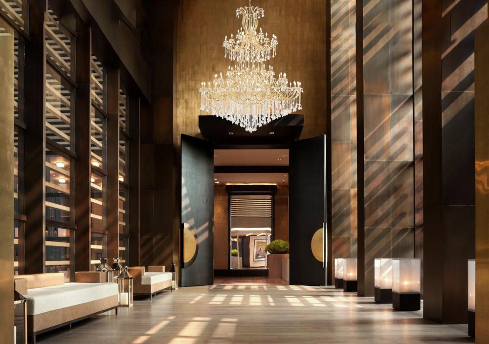 Hundreds of clear royal-cut crystal strands arch and dangle
