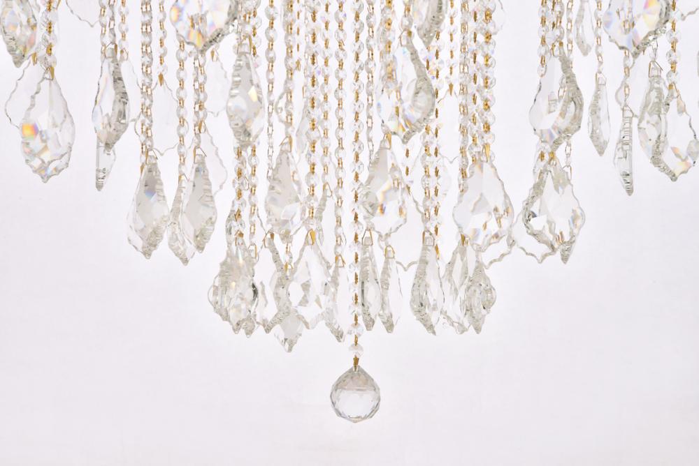 Hundreds of clear royal-cut crystal strands arch and dangle