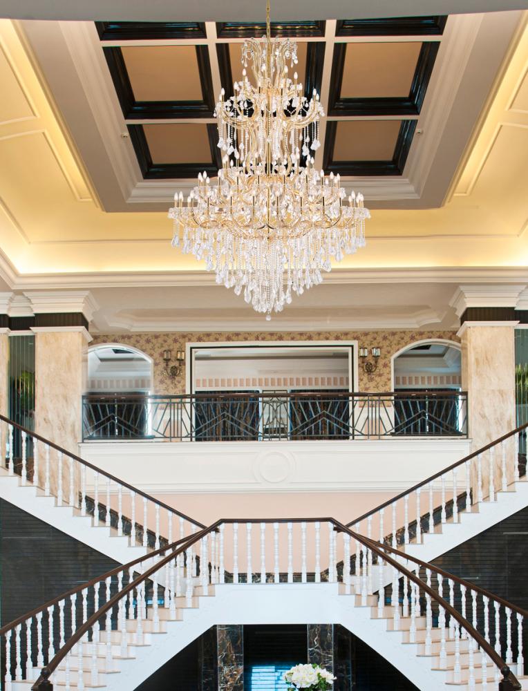 A heavenly high point to your home, Maria Theresa collection pendant lamps are ablaze with hundreds of resplendent crystals. Copious strands of sparkling clear or golden-teak crystals dangle from elaborate tiers of glass-coated steel arms in your choice of a chrome, gold, golden-teak, white, or black finish. An imperial favorite for the stairwell, dining room, or living room.
