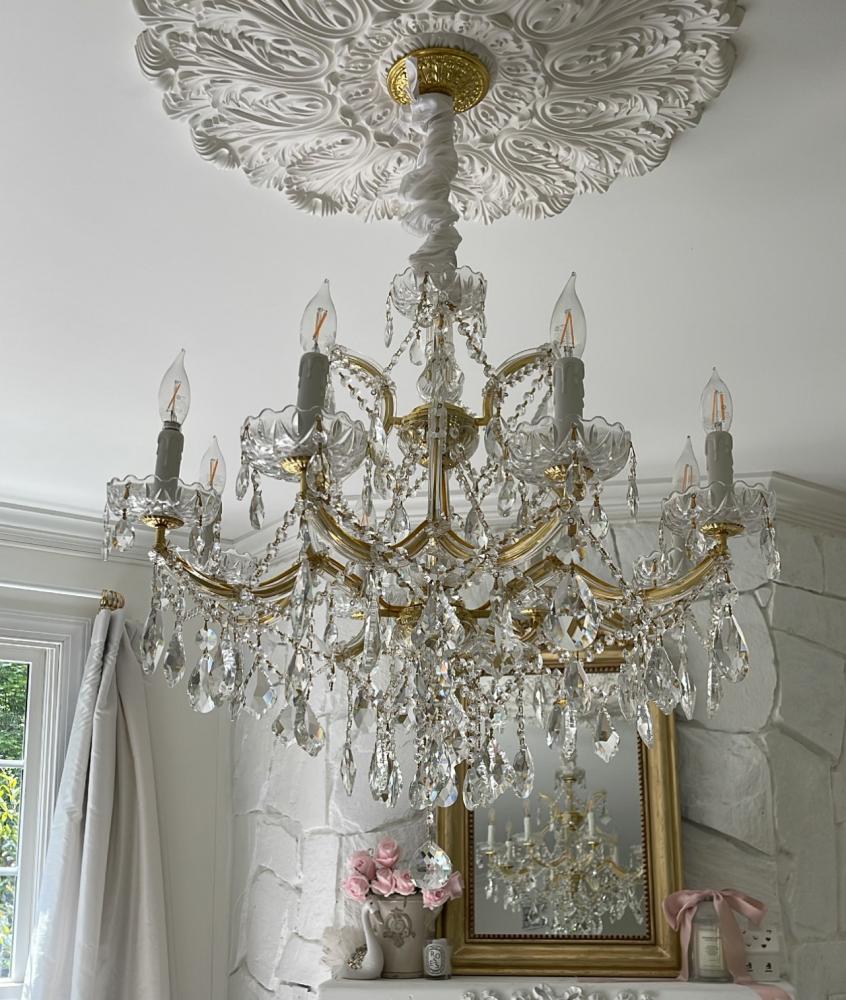 Draped in an abundance of crystal, the Maria Theresa collection is the epitome of high style. The fixture is stunning with glass arm frame decked with strands of faceted cut crystal. The fixture showcases opulence and decadence and is the perfect traditional accent to any space. Whether in a living room, or even closet or hallway, this fixture bring a luxurious addition to any decor.