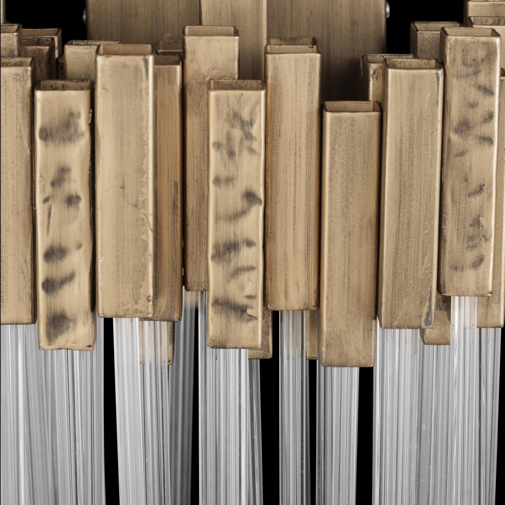 Hand Forged Recycled Steel. Handsomely Hammered Elements. Fluted 70'S Inspired Clear Glass Rods.