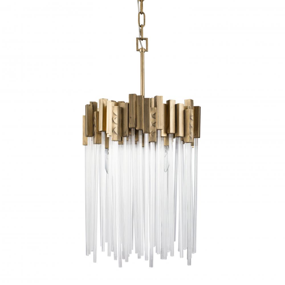 Hand Forged Recycled Steel. Handsomely Hammered Elements. Fluted 70'S Inspired Clear Glass Rods.