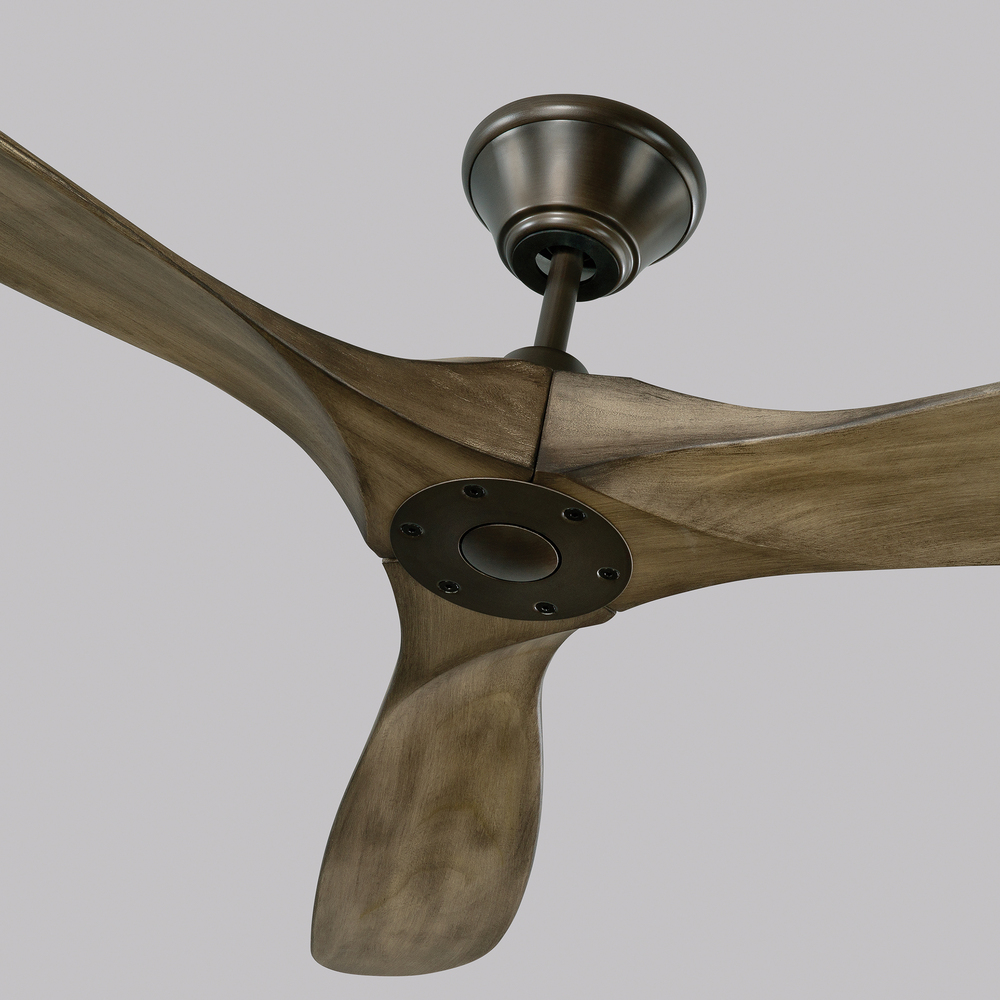 The Maverick 60 in Aged Pewter features an 85.0 X 28.0 6-speed motor with a Thirteen-degree blade pitch. With a sleek modern silhouette, a DC motor, and super energy-efficiency, the 60" Maverick ceiling fan features softly rounded blades and elegantly simple housing. Maverick has a 60-inch blade sweep and a 3-blade design that delivers a distinct profile and incredible airflow for living rooms, great rooms, or outdoor covered areas. It includes a hand-held remote with six speeds. It reverses and is available in six distinct finish options: Brushed Steel housing with Dark Walnut blades, Brushed Steel housing with Koa blades, Matte Black housing with Dark Walnut Blades, Aged Pewter housing with Light Grey Weathered Oak blades, Matte Black housing with Matte Black blades and Matte White housing with Matte White blades. All versions feature beautiful hand-carved balsa wood blades. ENERGY STAR qualified. Maverick fans are damp-rated and may be used indoors and in covered outdoor spaces.