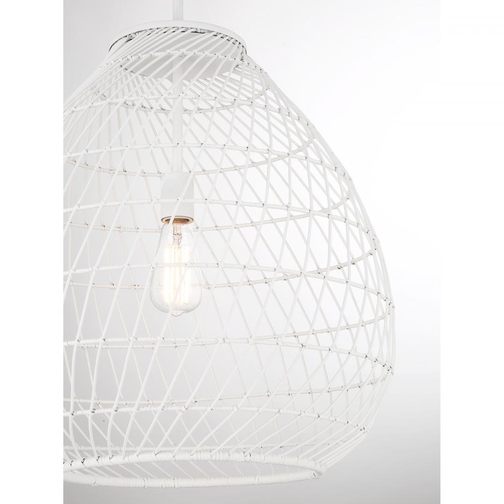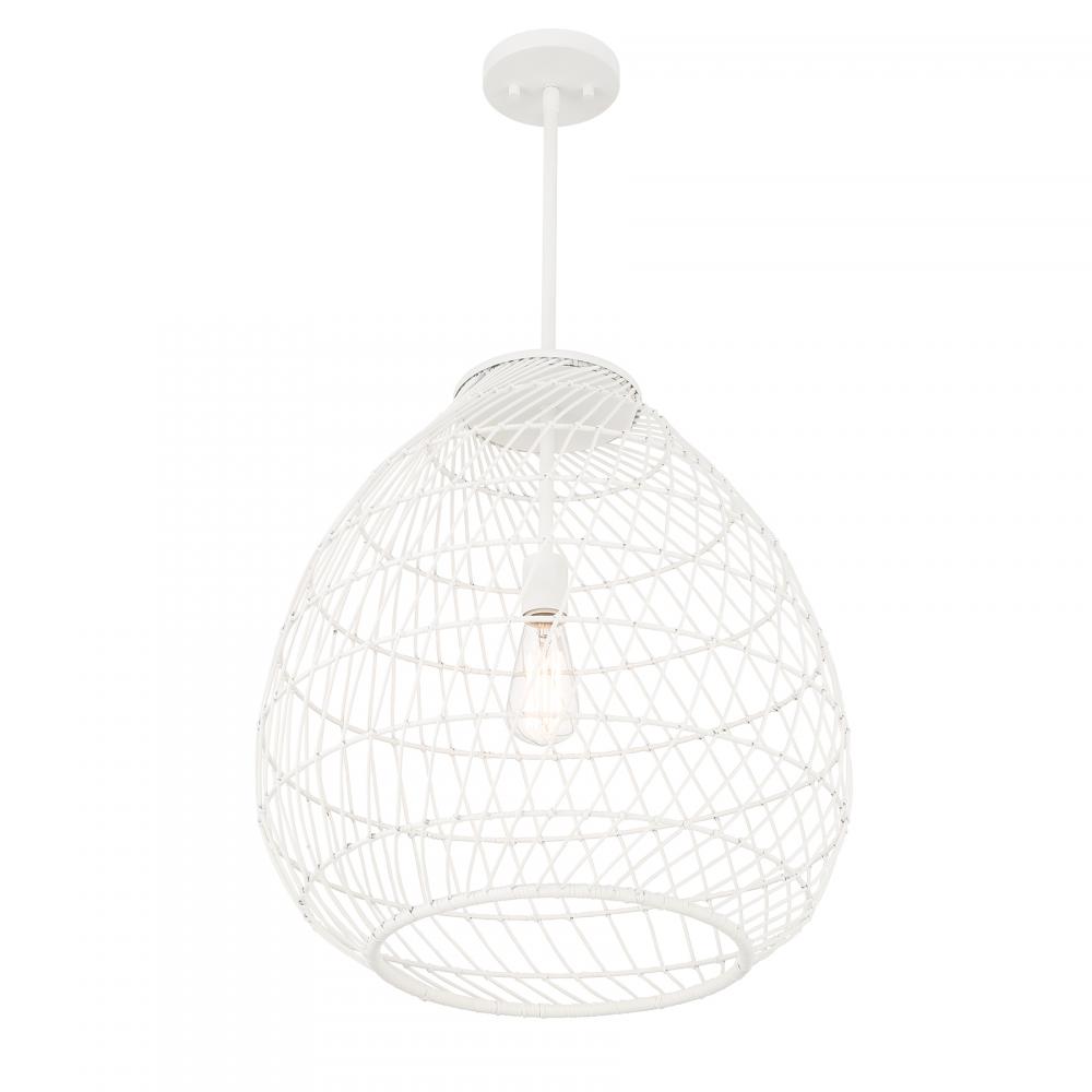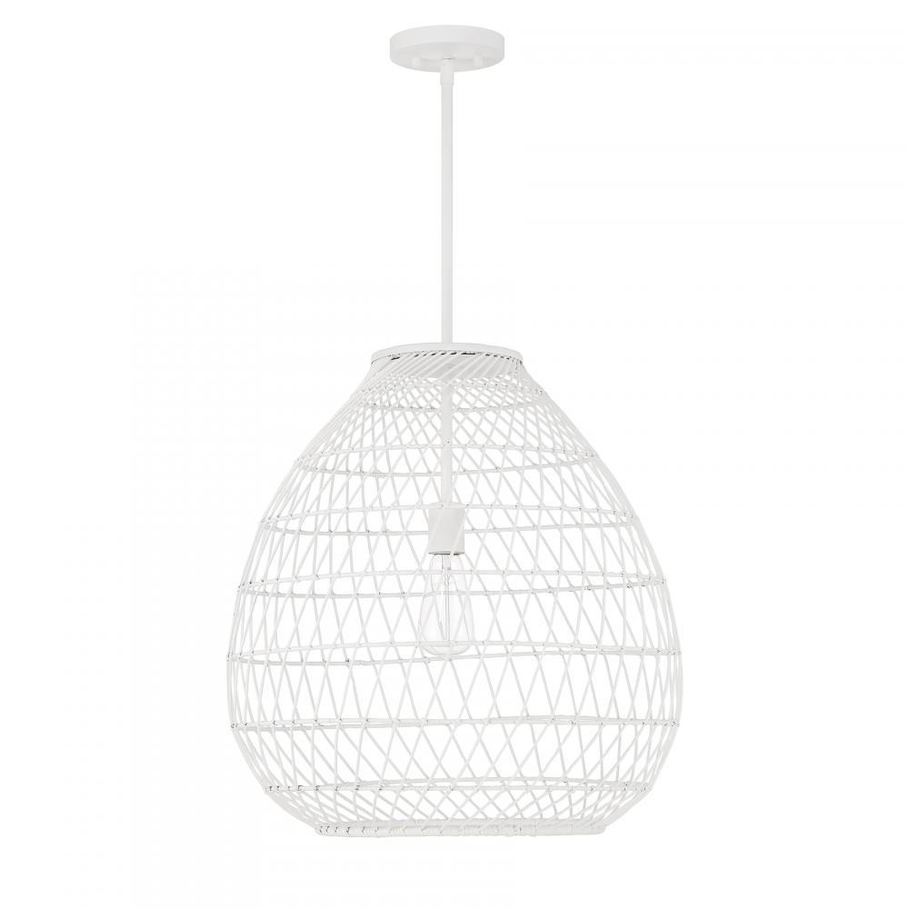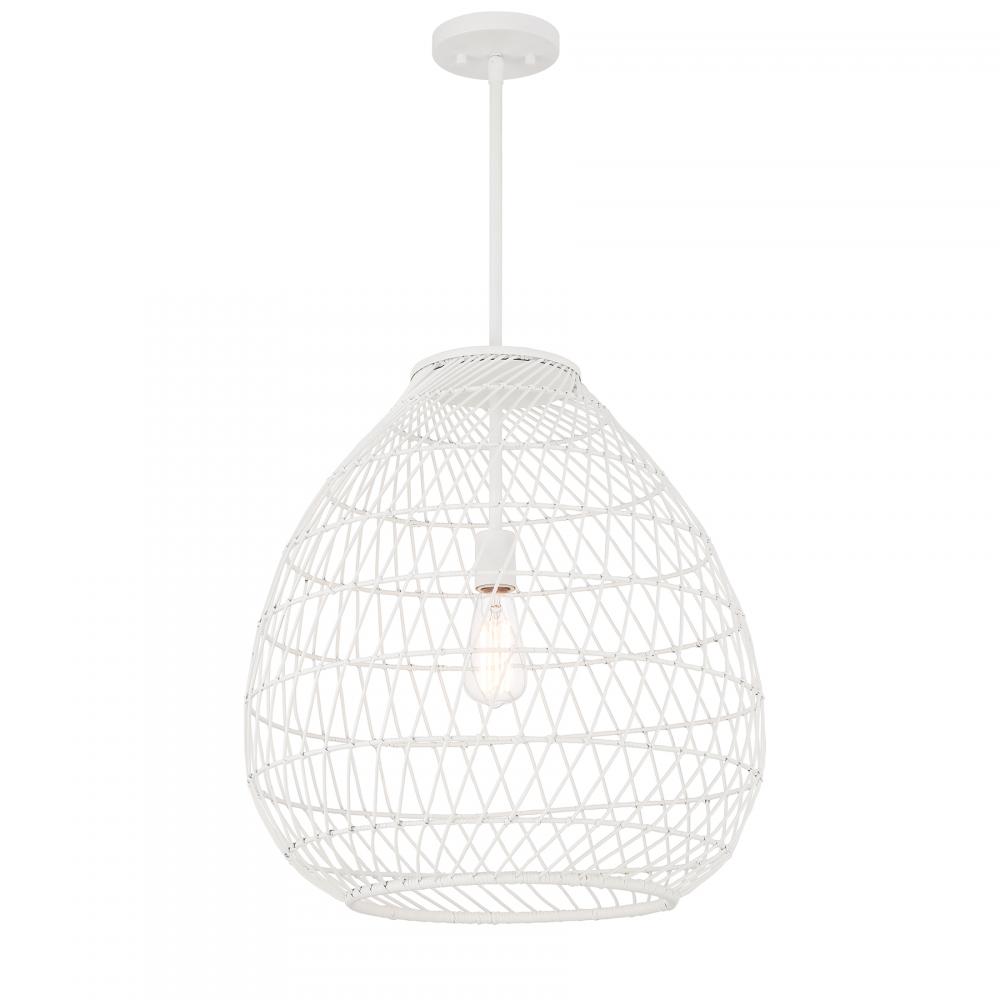 Savoy House brings the natural beauty of rattan lighting to the great outdoors with the Maya 1-light pendant. A basket-like white resin wicker shade creates touchable, eye-catching texture and holds an exposed light bulb. Bisque White finish. Maya is 20" in width and has an adjustable height ranging from 21.5" to 75.5". Comes with four 12" downrods and one 6" downrod. Uses one standard size bulb of up to 60 watts. The bulb is not included. Maya is damp area rated and can also be used indoors.
