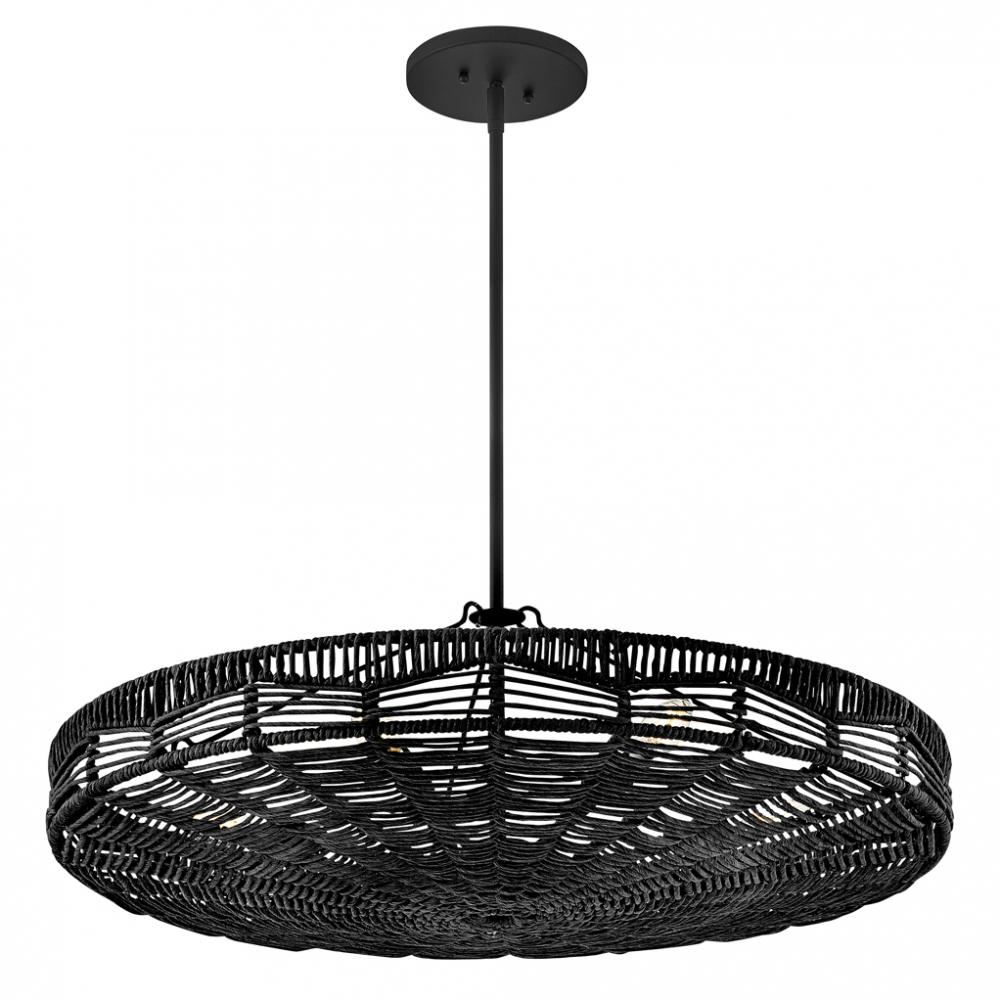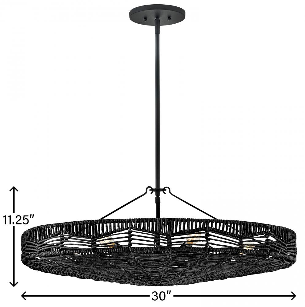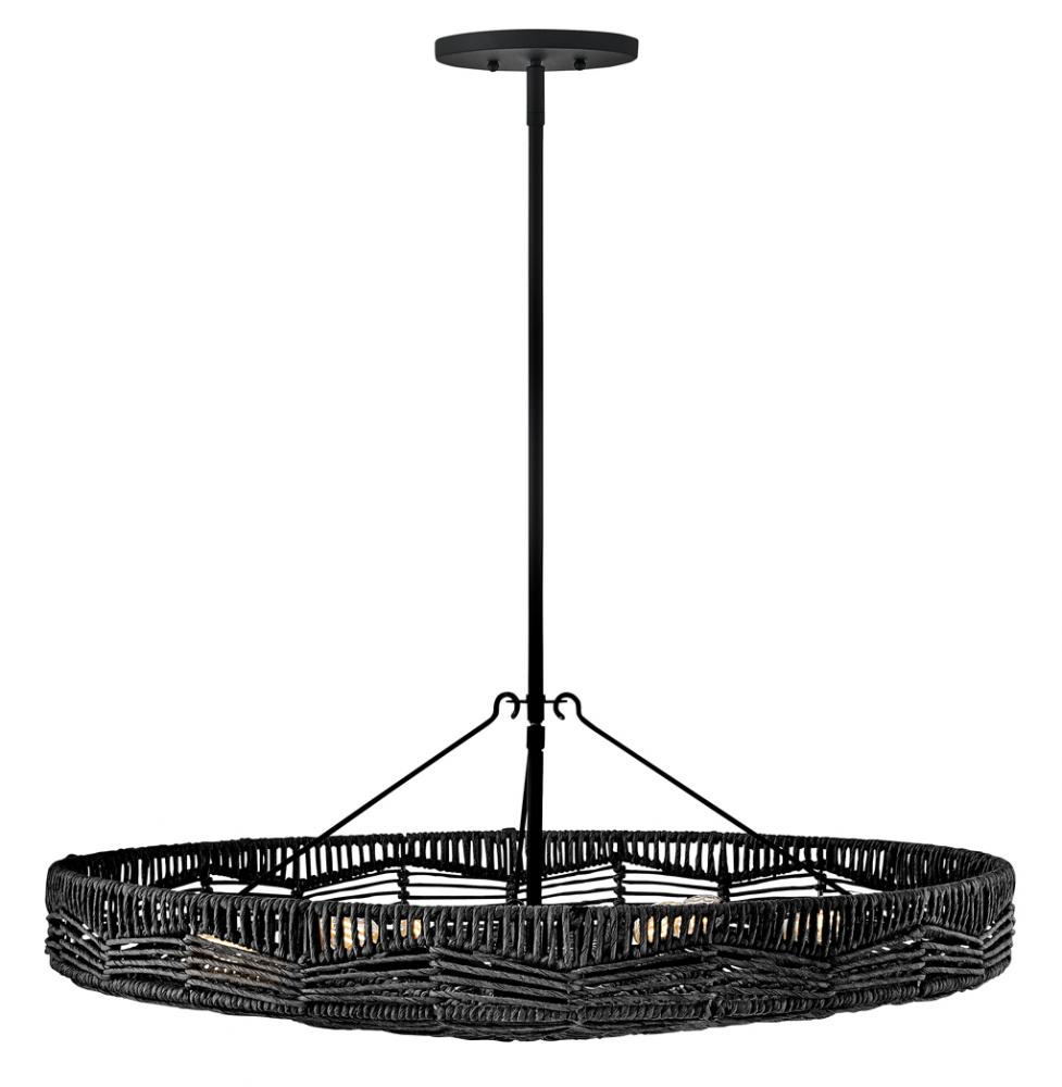 This dazzling design offers striking illumination through a beautiful handwoven pattern. Ophelia radiates with organic elegance as a natural shade adorns a tiered basket frame finished in Black.