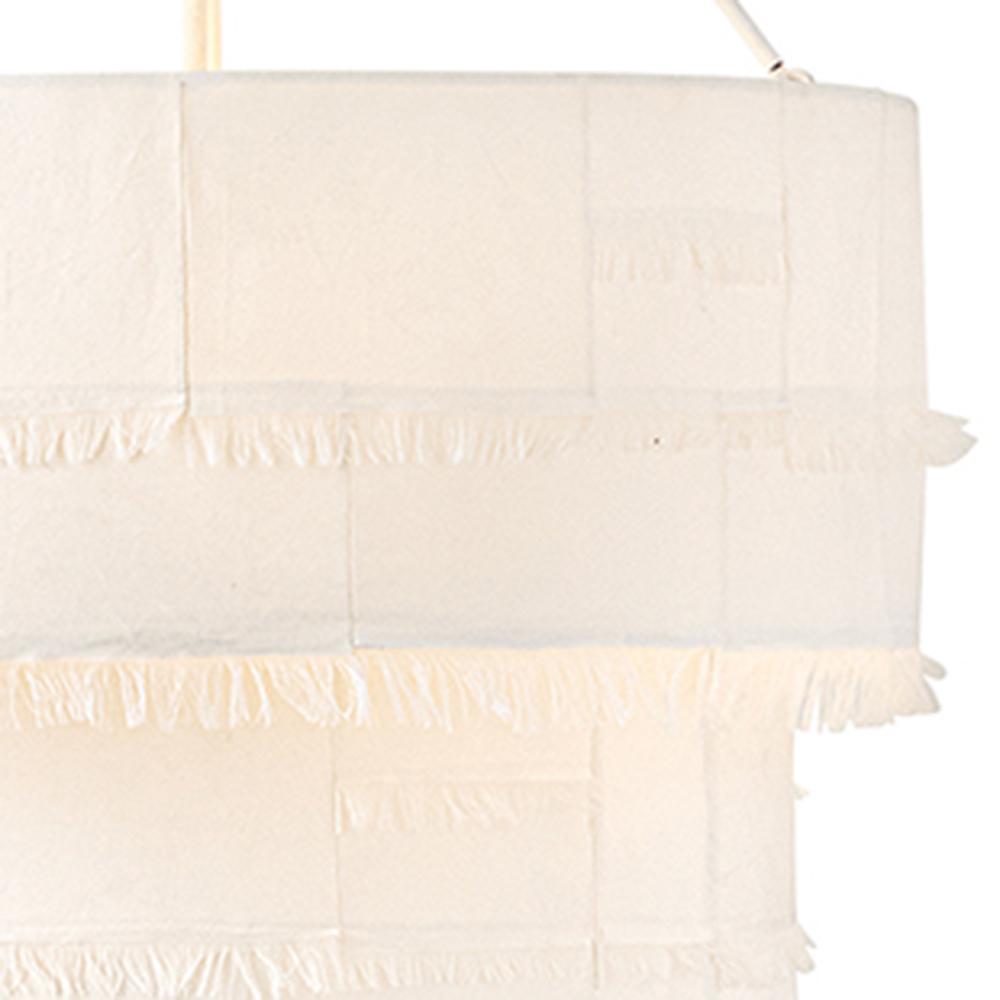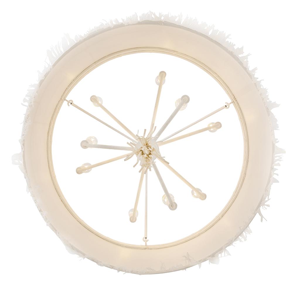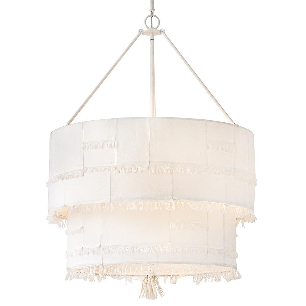 Taking a nod from current distressed fashions, Baya’s soft, hand-sewn patchwork shade creates a light and elegant feeling. Its coastal cottage style and chic texture make an artsy transitional statement complemented by a leather tassel, comfortable dimmable lamping, and a Textured Plaster finish.