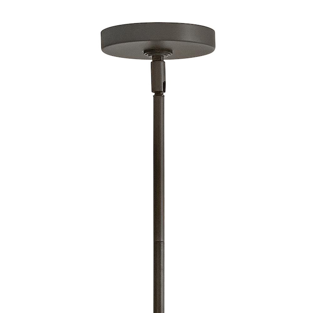 Fusing a sculpted, modern form with classically styled details, Collins features a transitional teardrop shade crafted from blown, cased opal glass. A central metal band and delicate chain uprights are available in Heritage Brass or Black Oxide finishes.