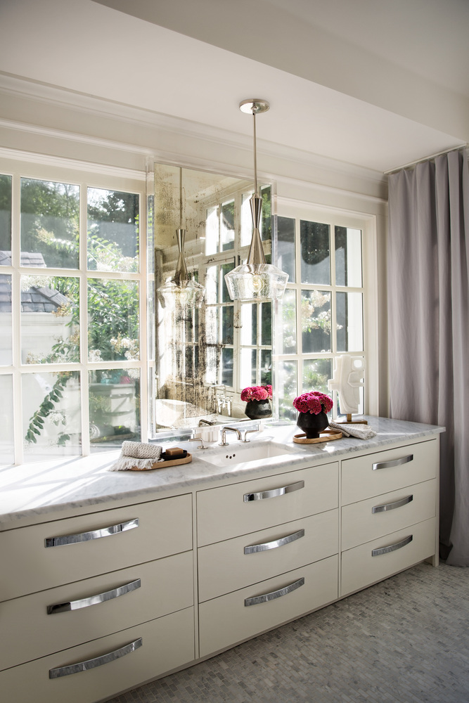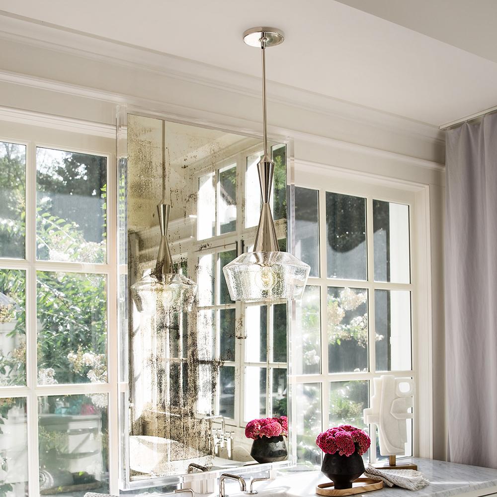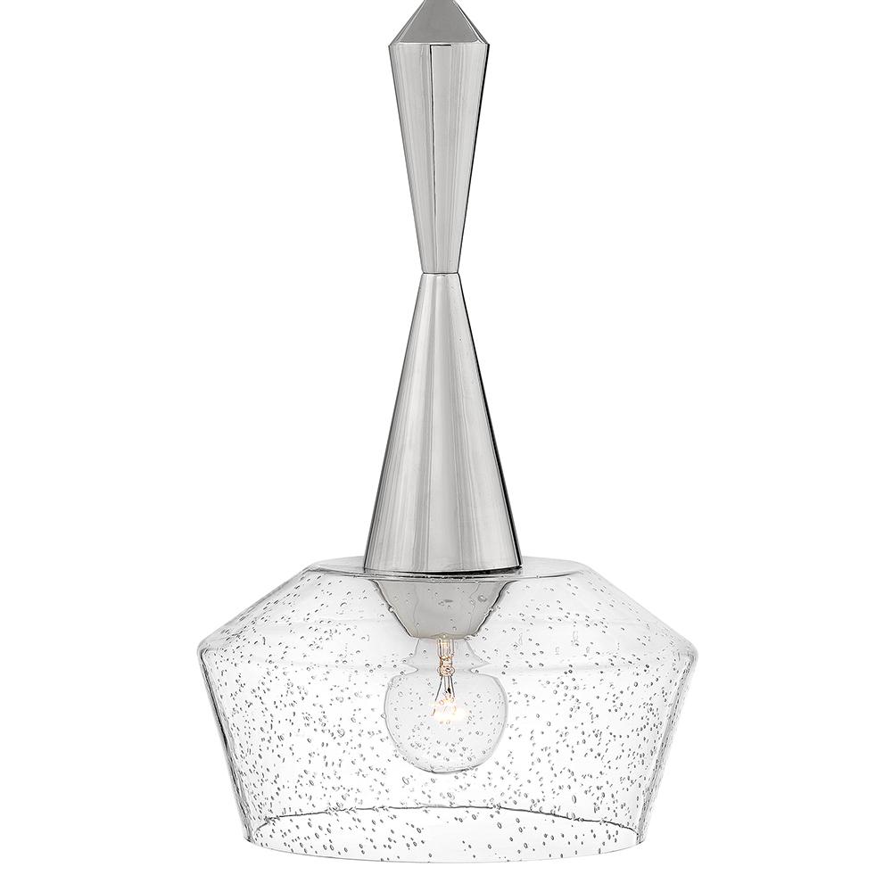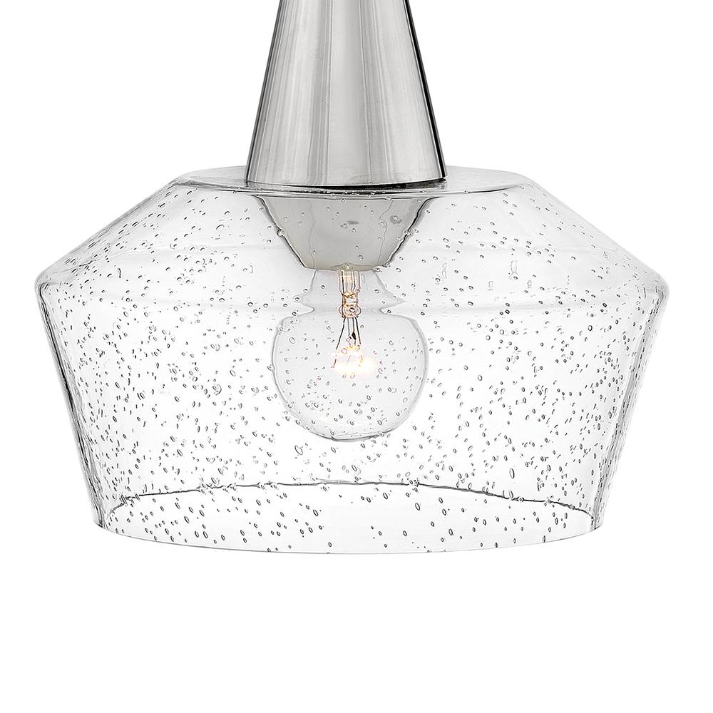 The Bette pendant captures perfection from every perspective. The distinctively angled, clear seedy glass shade has a mid-century modern profile that is both bold and sophisticated, while the tapered fitter echoes the angular glass. Luxe Heritage Brass or Polished Nickel finish options enhance Bette's panache.