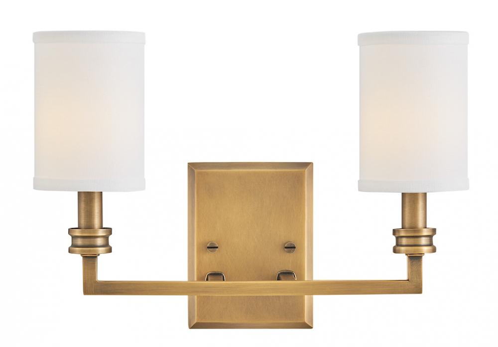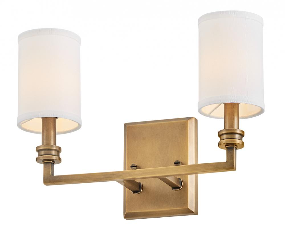 A modern interpretation of traditional torch sconces, Moore’s square stems and beveled back plate are complemented by decorative cast details. Off-white linen shades accentuated by top and bottom binding create a sophisticated, tailored look.