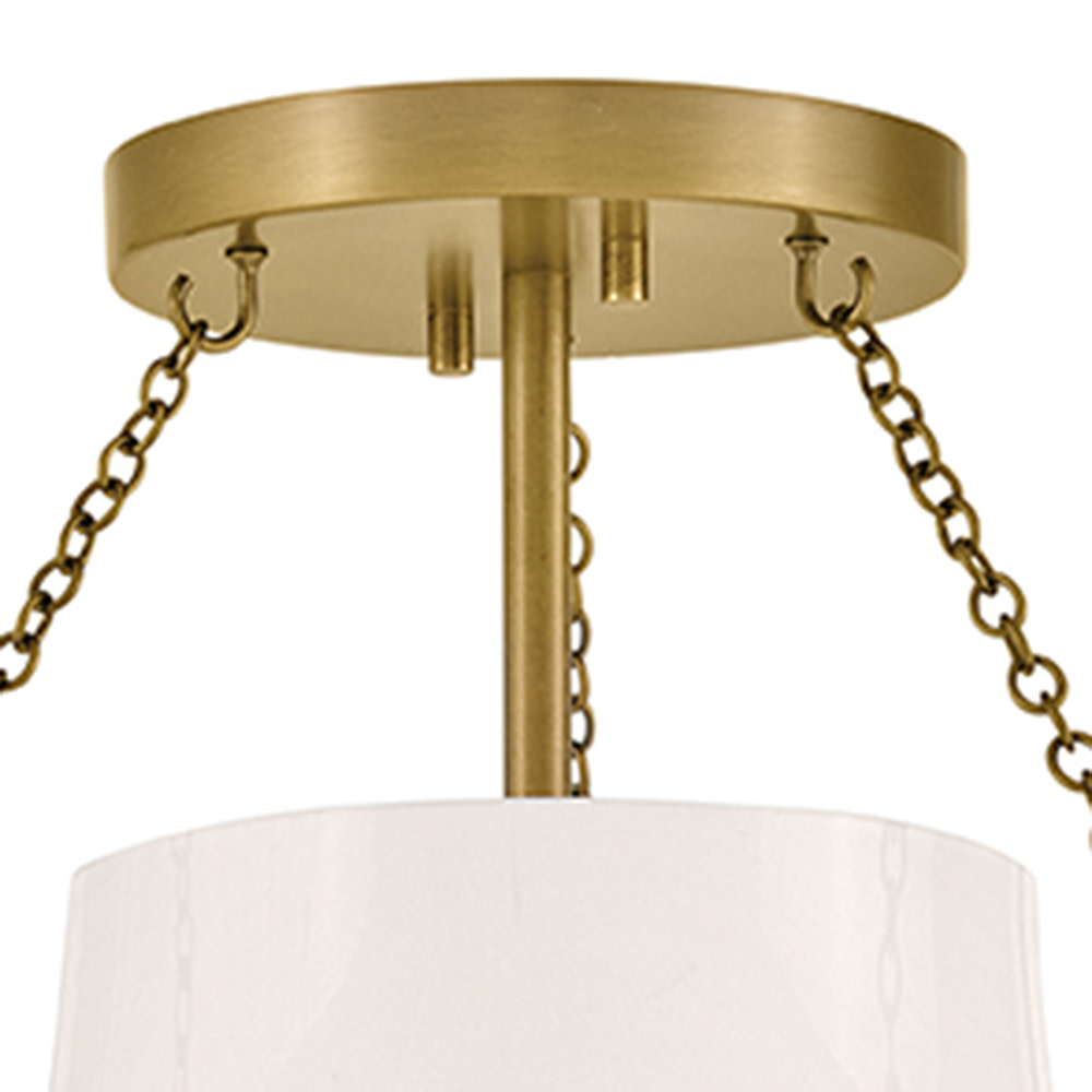 Fusing a sculpted, modern form with classically styled details, Collins features a transitional teardrop shade crafted from blown, cased opal glass. A central metal band and delicate chain uprights are available in Heritage Brass or Black Oxide finishes.
